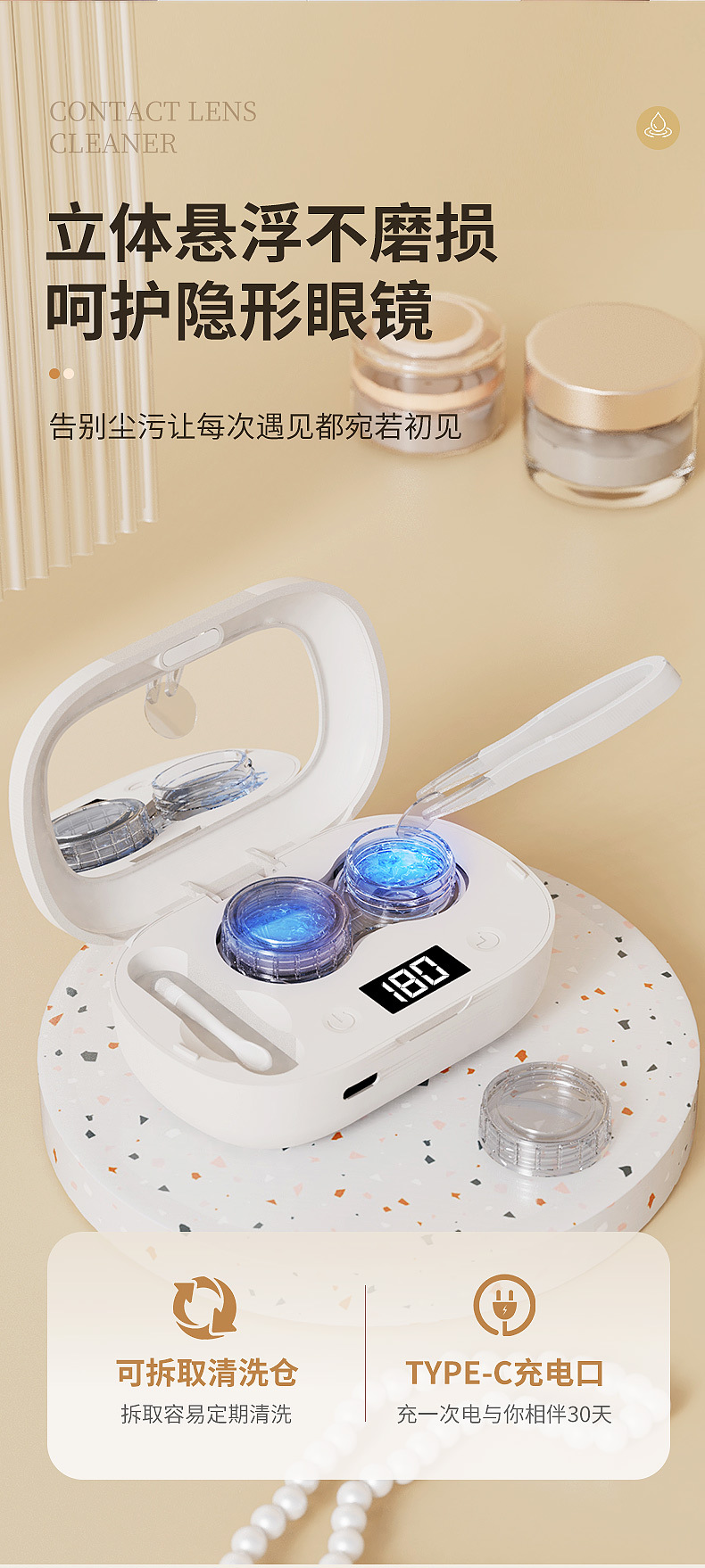 새로운 청소 상자 접촉 렌즈 클리너 충전식 휴대용 뷰티 학생 상자 초음파 미니 고주파 국경스토어 가기