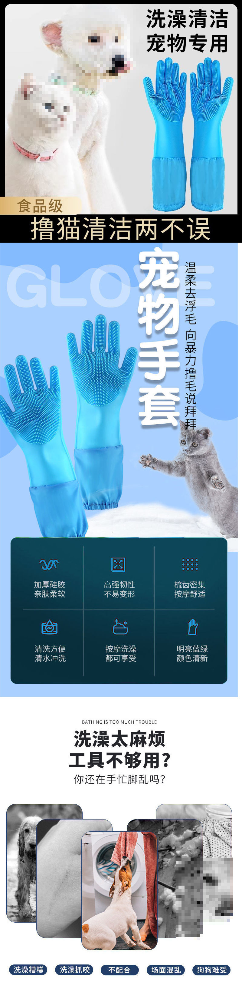 애완견 목욕용 손수건, 고양이 목욕용 브러쉬, 고양이 목욕용 브러쉬, 강아지용 브러쉬, 강아지 긁힘 방지 및 물림 방지 용품