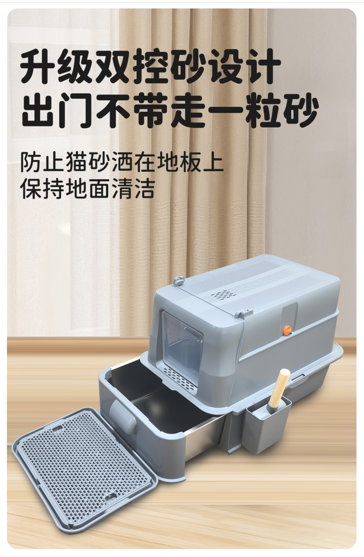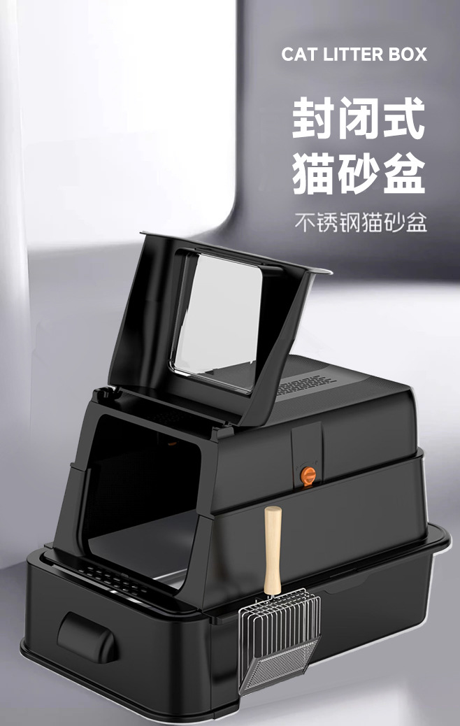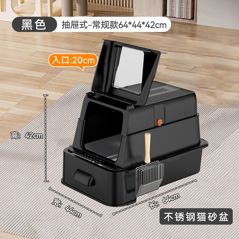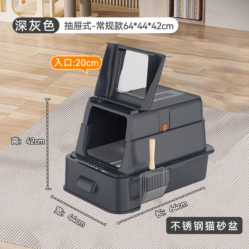 편리하고 쉬운 청소 및 고층 안티 스플래시 고양이 화장실을위한 대형 서랍 형 완전히 밀폐 된 스테인레스 스틸 쓰레기 상자