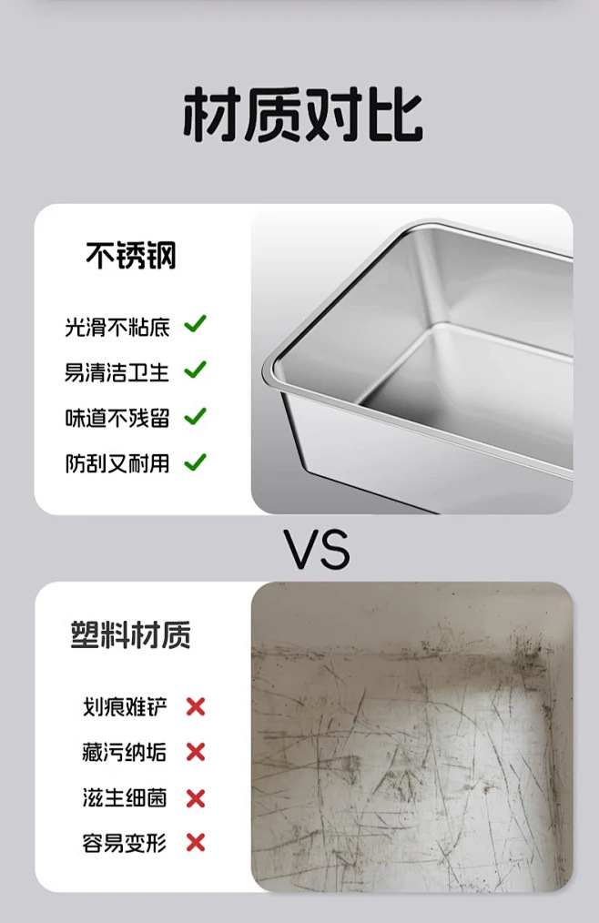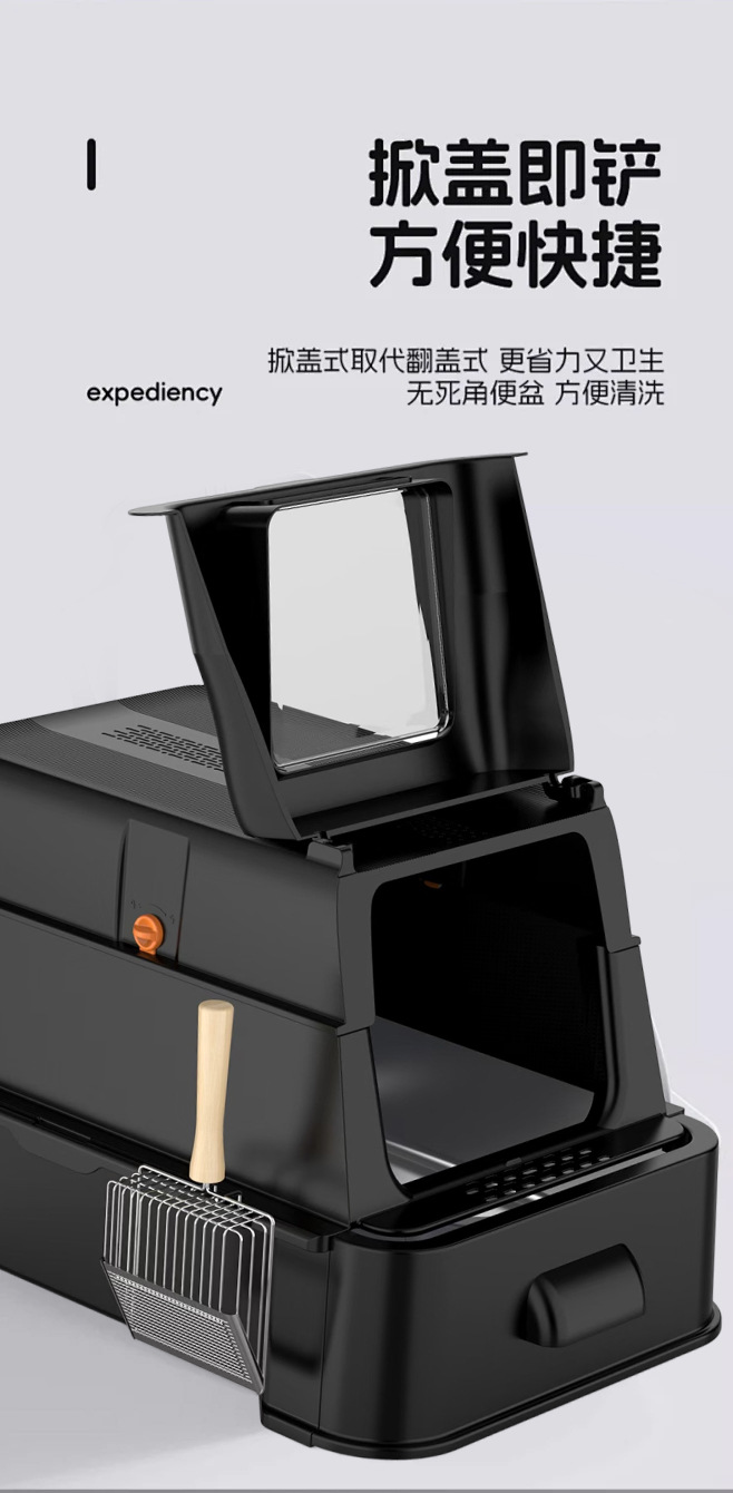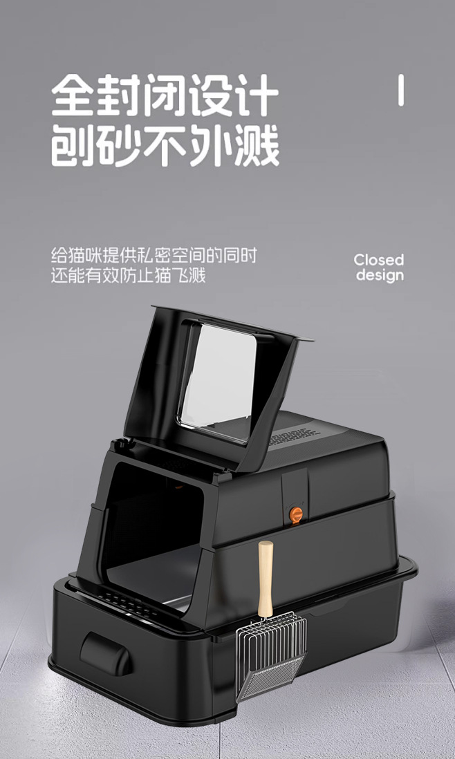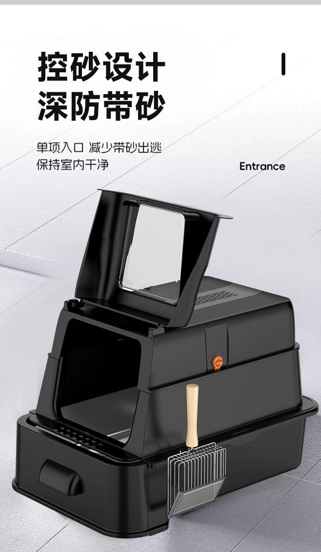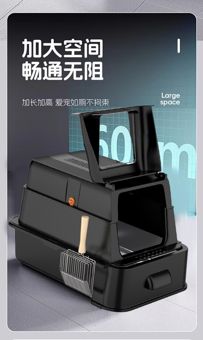 편리하고 쉬운 청소 및 고층 안티 스플래시 고양이 화장실을위한 대형 서랍 형 완전히 밀폐 된 스테인레스 스틸 쓰레기 상자