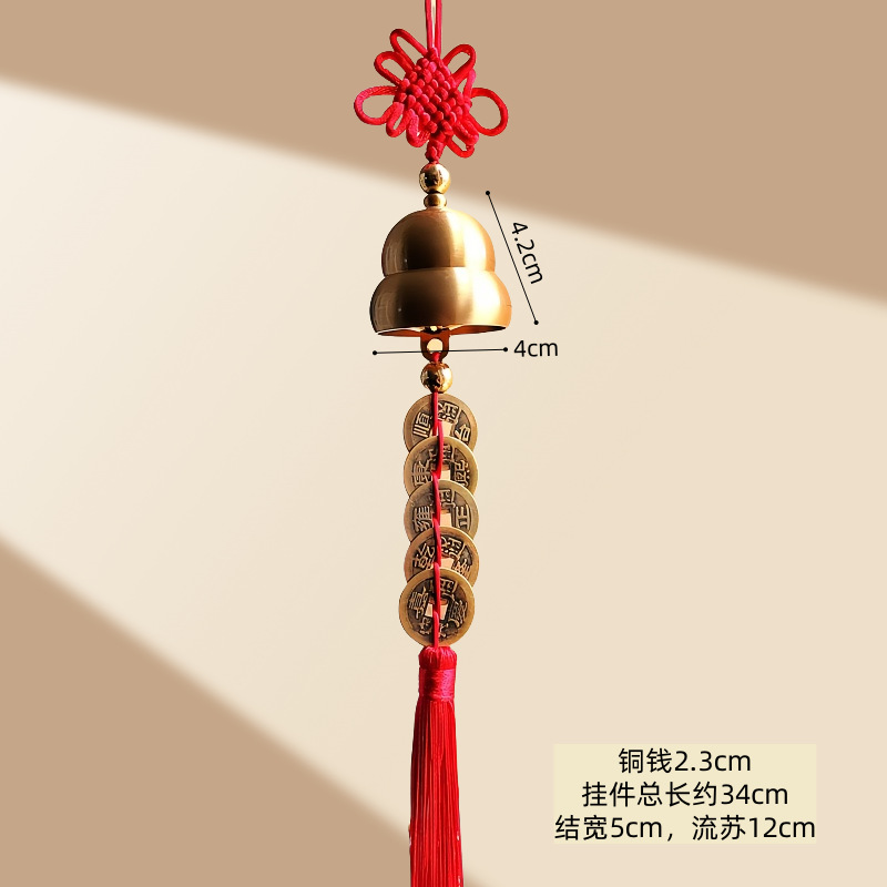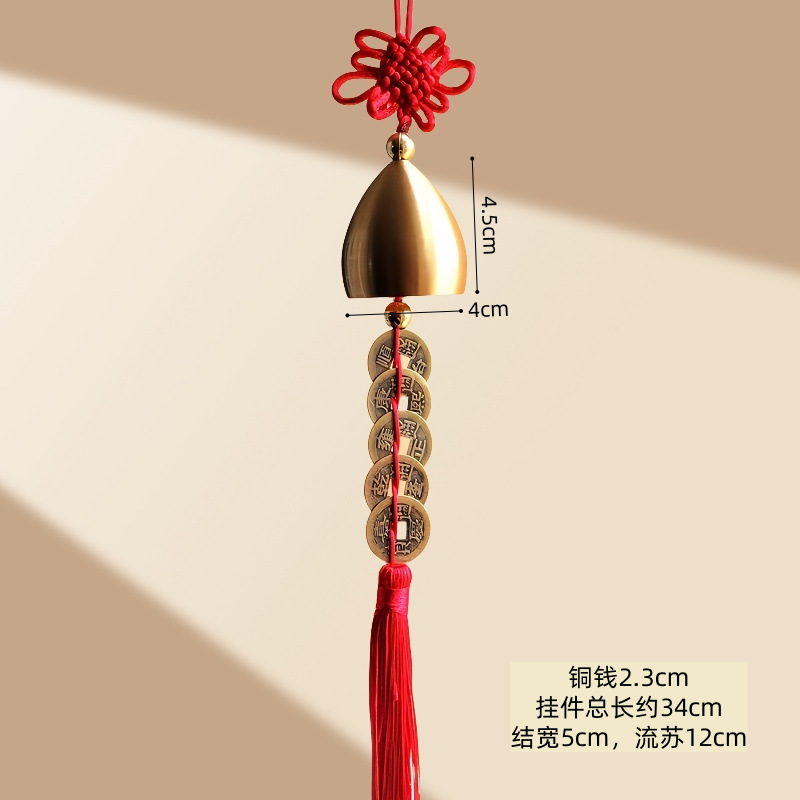 순수 구리 벨 바람 벨 매달려 문 장식 홈 스토어 발코니 펜던트 다섯 황제 돈 구리 펜던트 안전 자동차 펜던트