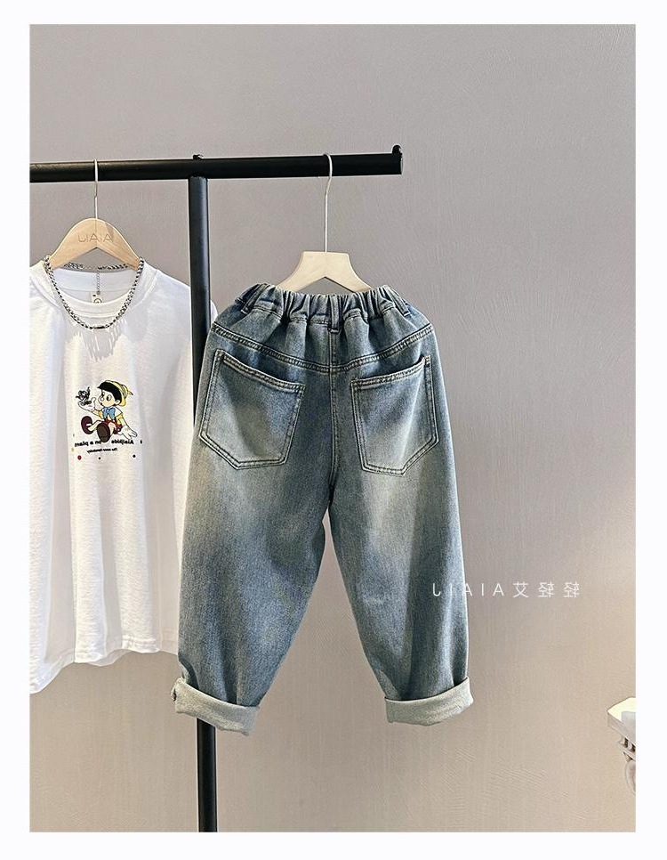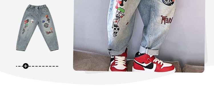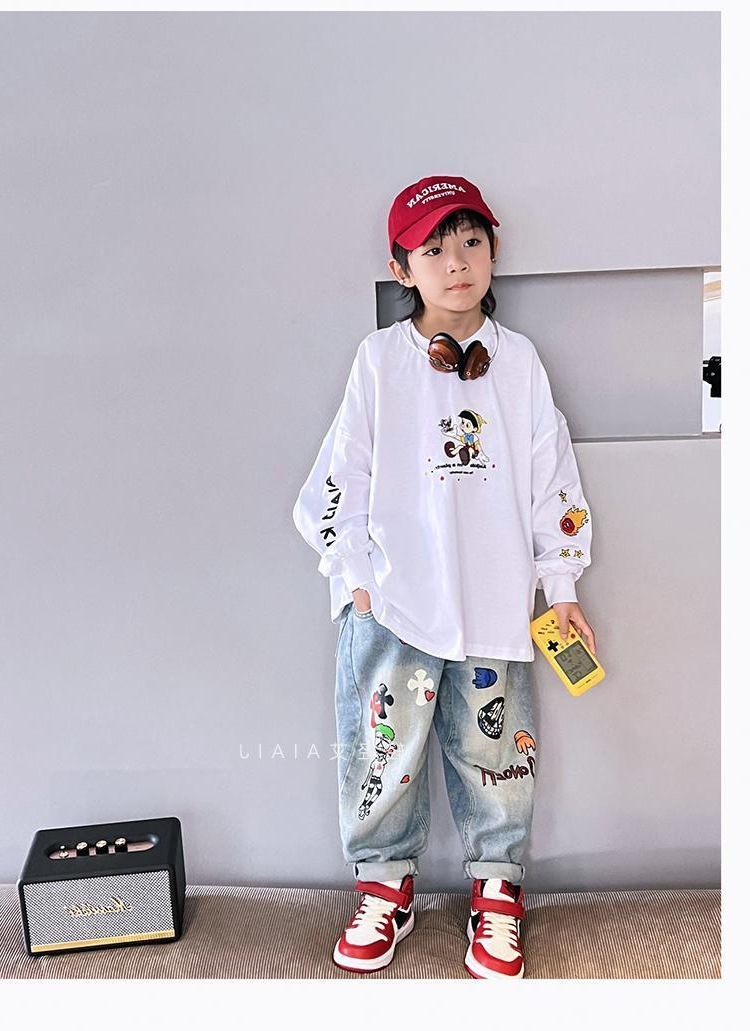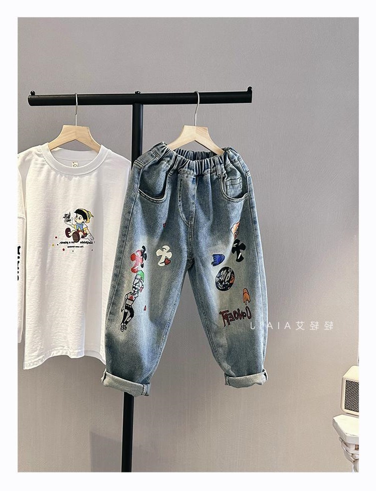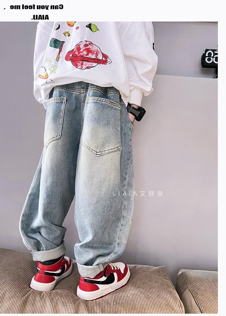 아동용 그래피티 청바지, 봄, 가을 스타일, 다재다능한 남아용 바지, 루즈한 새해맞이 의류, 중대형 아동용 가을, 겨울 바지스토어 가기
