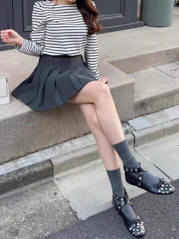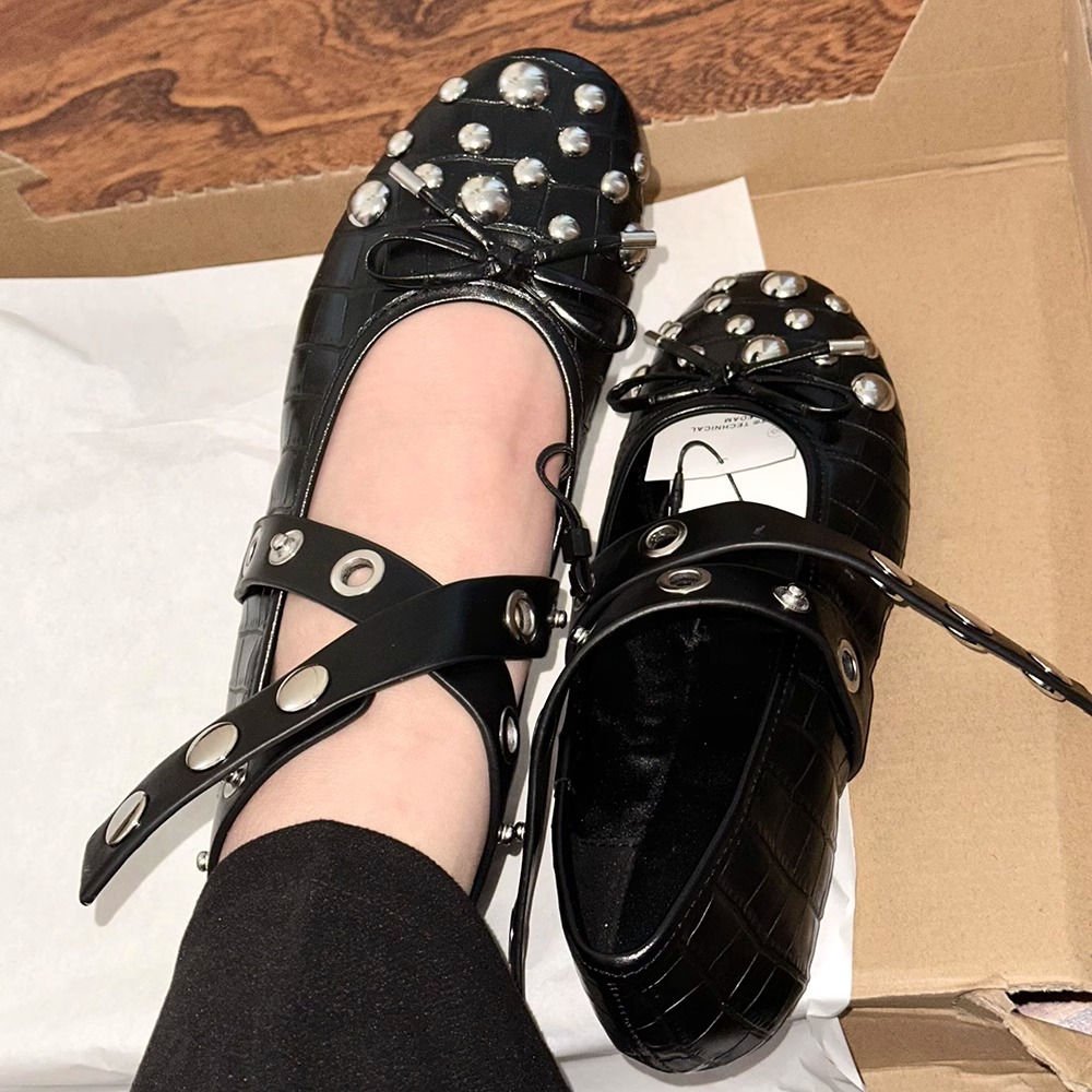 양가죽 버전 ~ 프랑스 리벳 크로스 스트랩 플랫 발레 신발 여성 빈티지 싱글 신발 활 얕은 입 메리 제인 신발