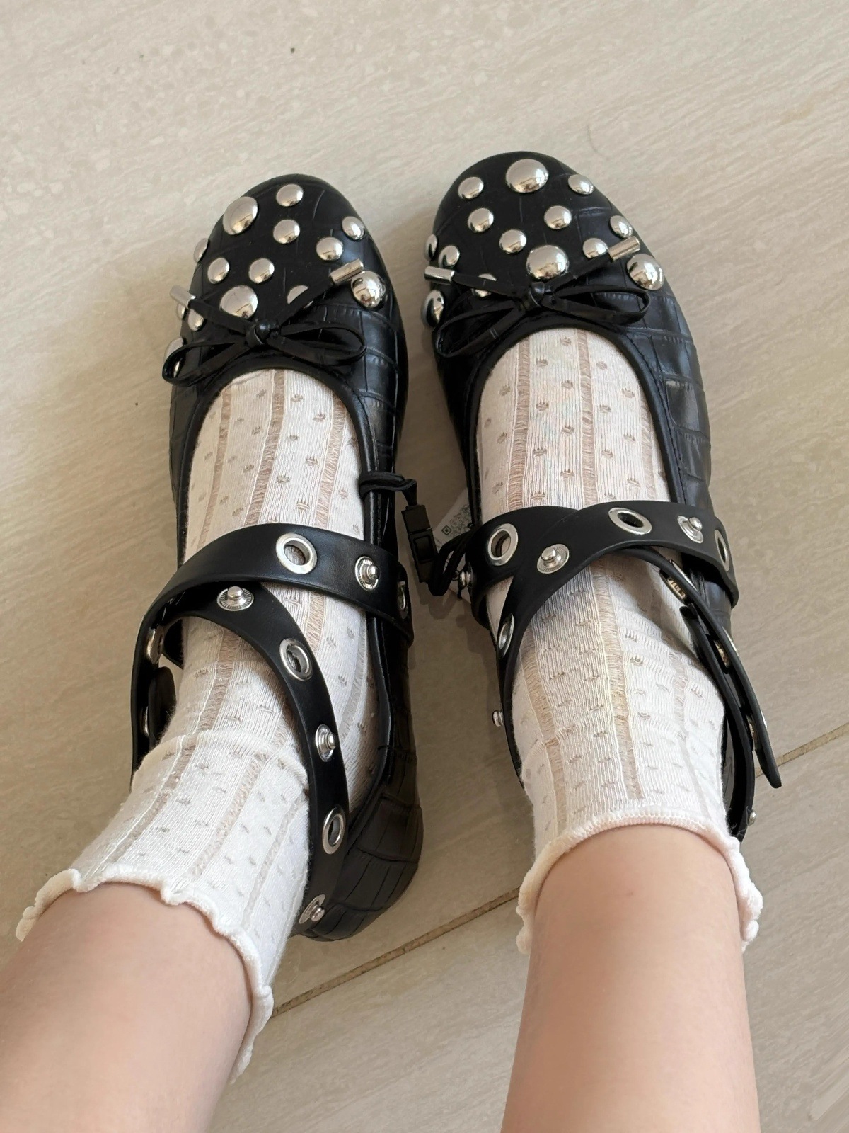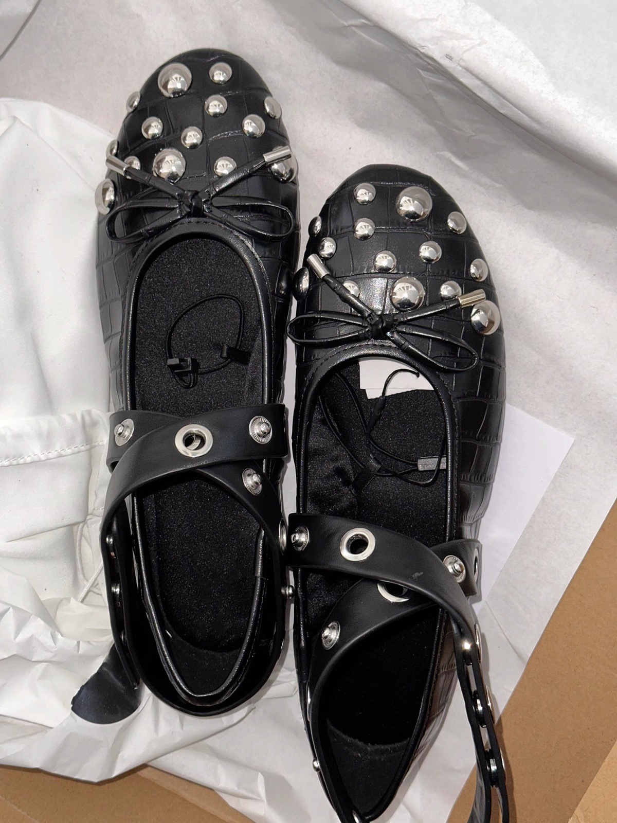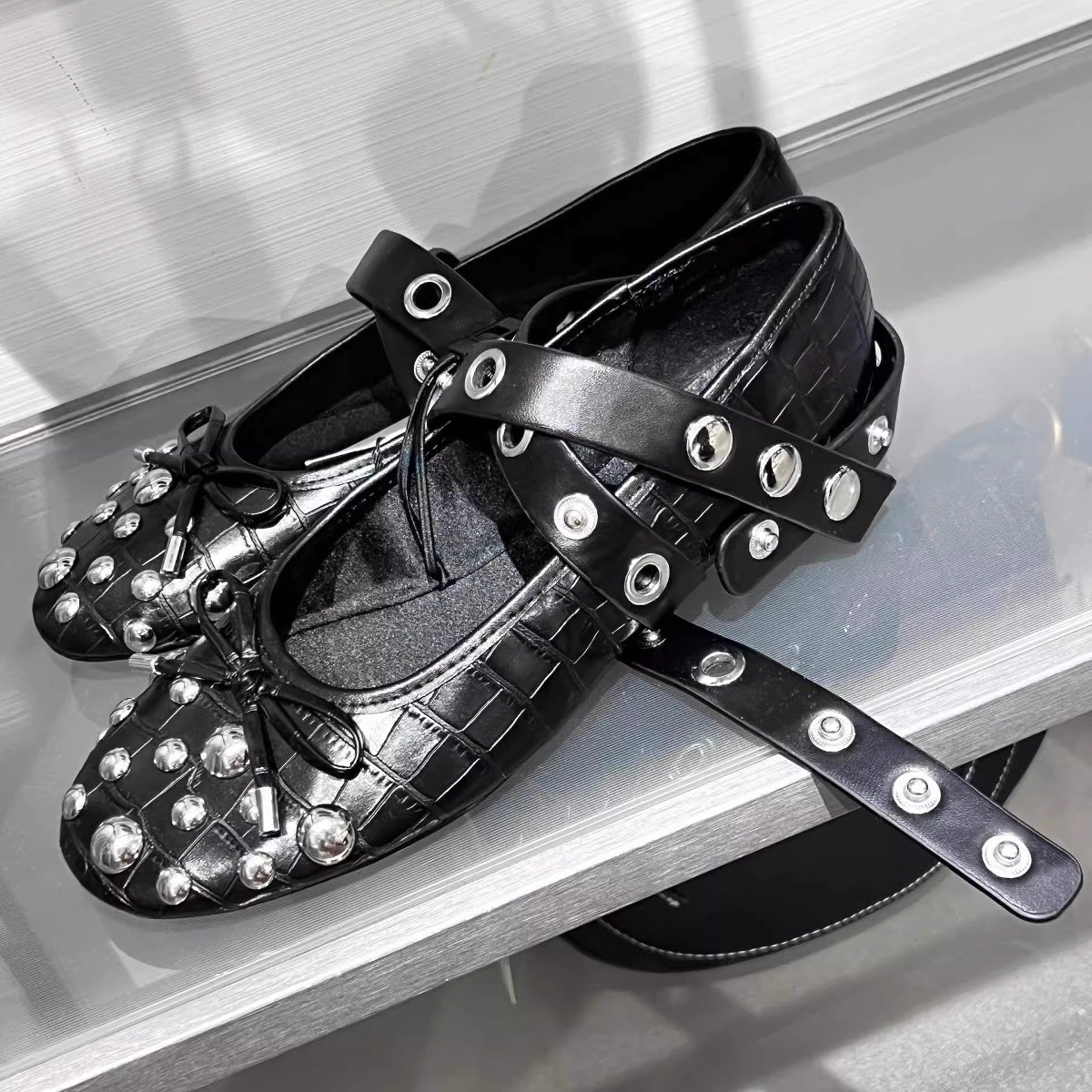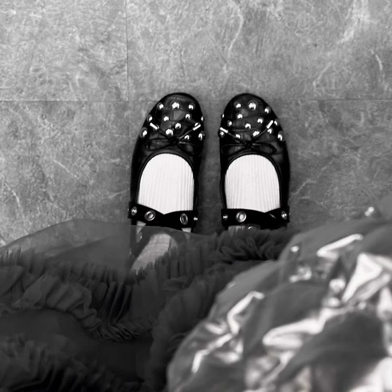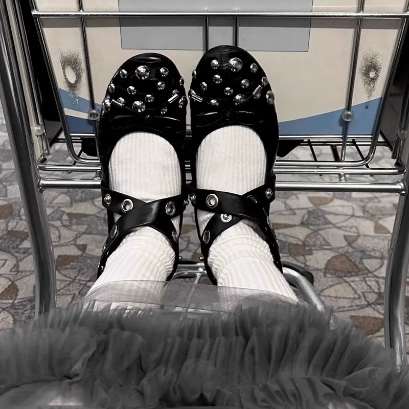 양가죽 버전 ~ 프랑스 리벳 크로스 스트랩 플랫 발레 신발 여성 빈티지 싱글 신발 활 얕은 입 메리 제인 신발스토어 가기