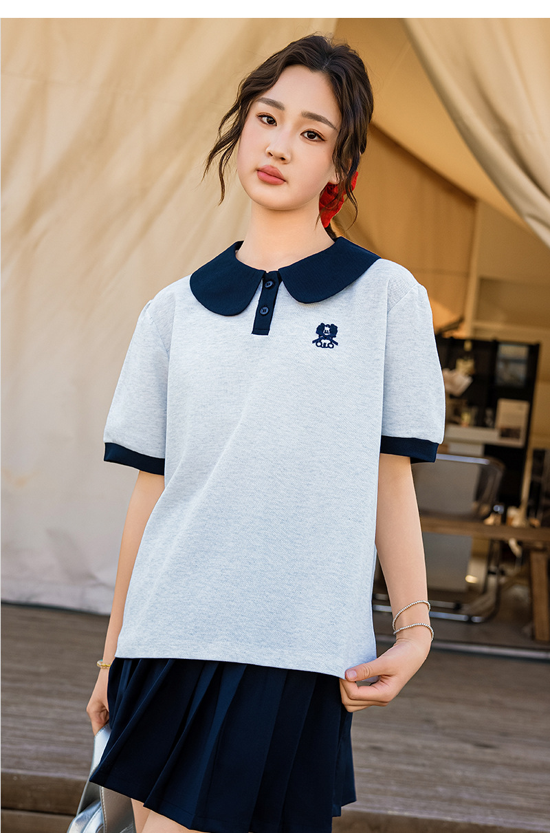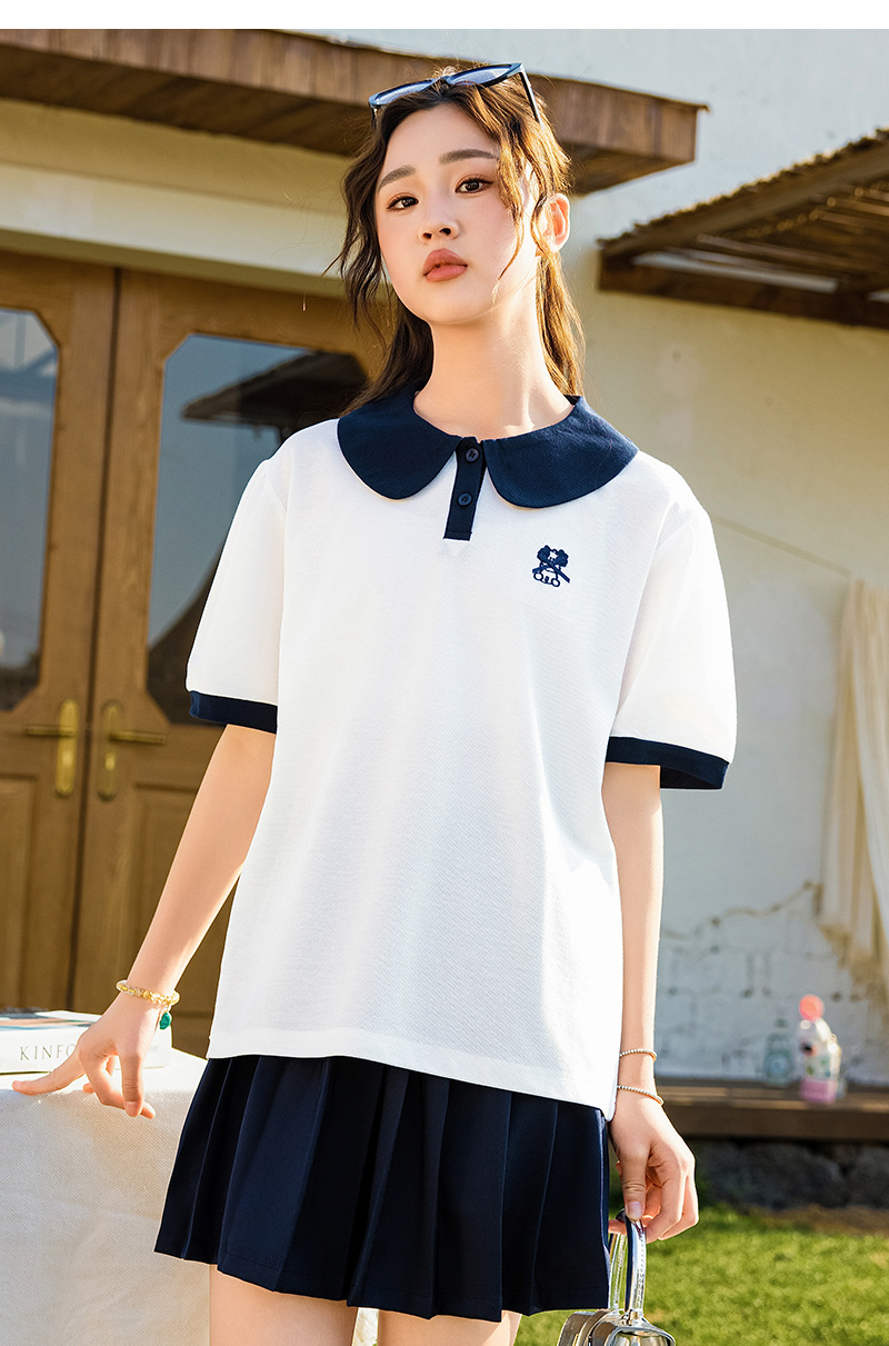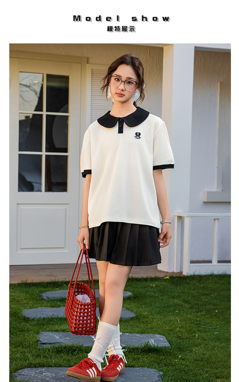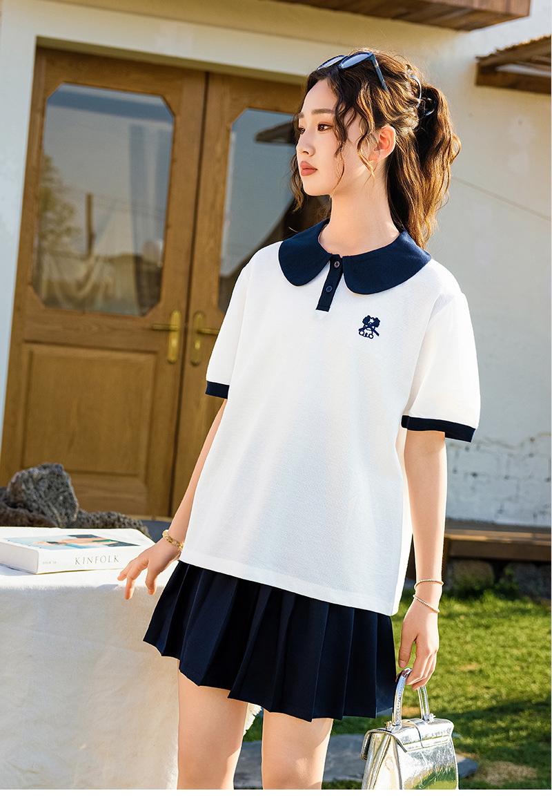 소녀의 반팔 티셔츠 2025 새로운 어린이 여름 폴로 셔츠 캐주얼 최고 고등학생 짧은 여름 원피스스토어 가기
