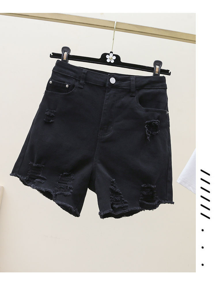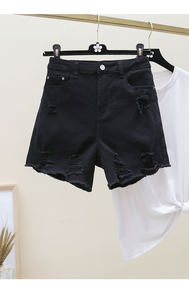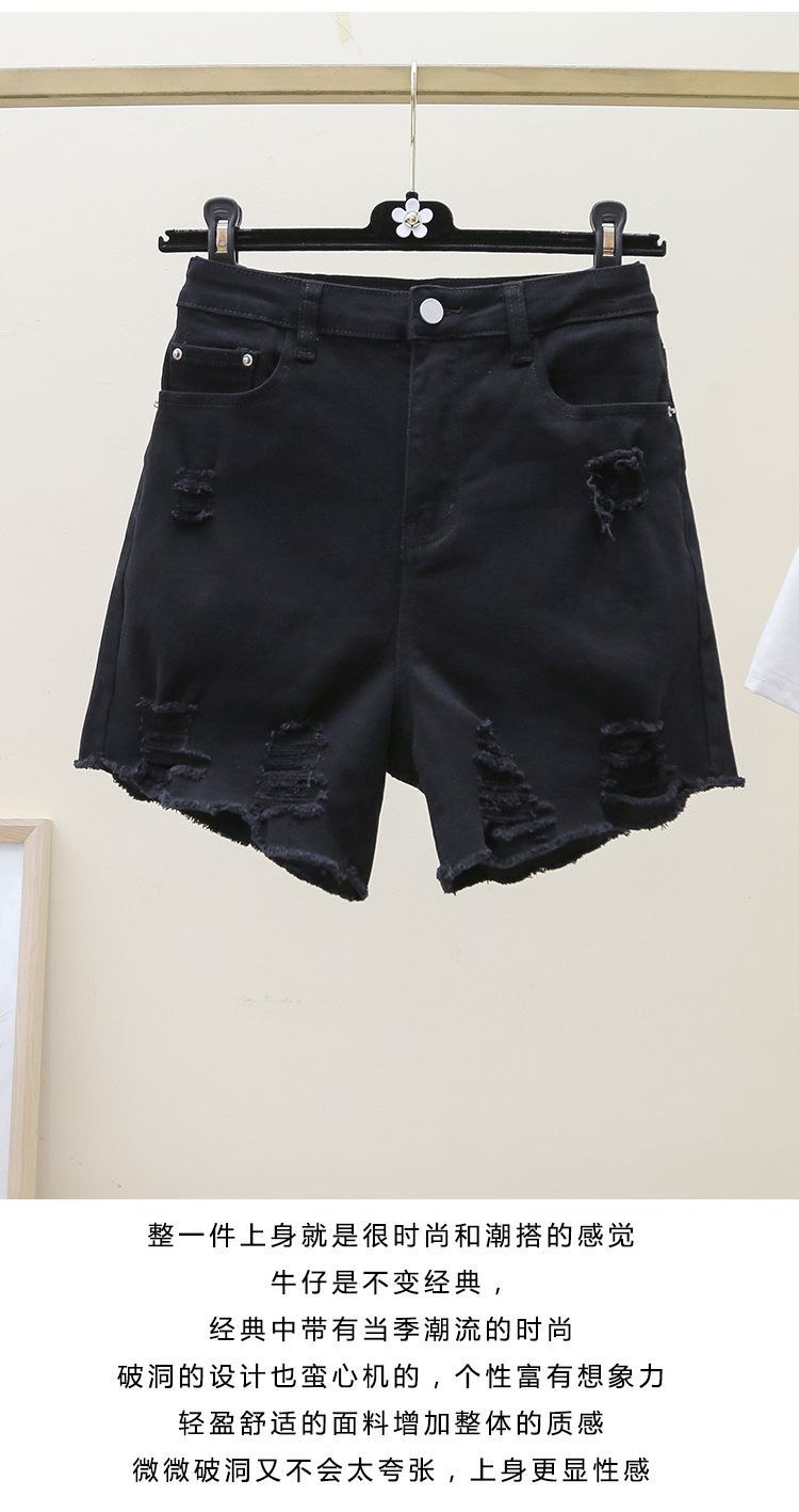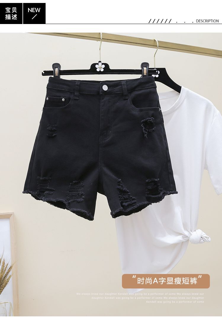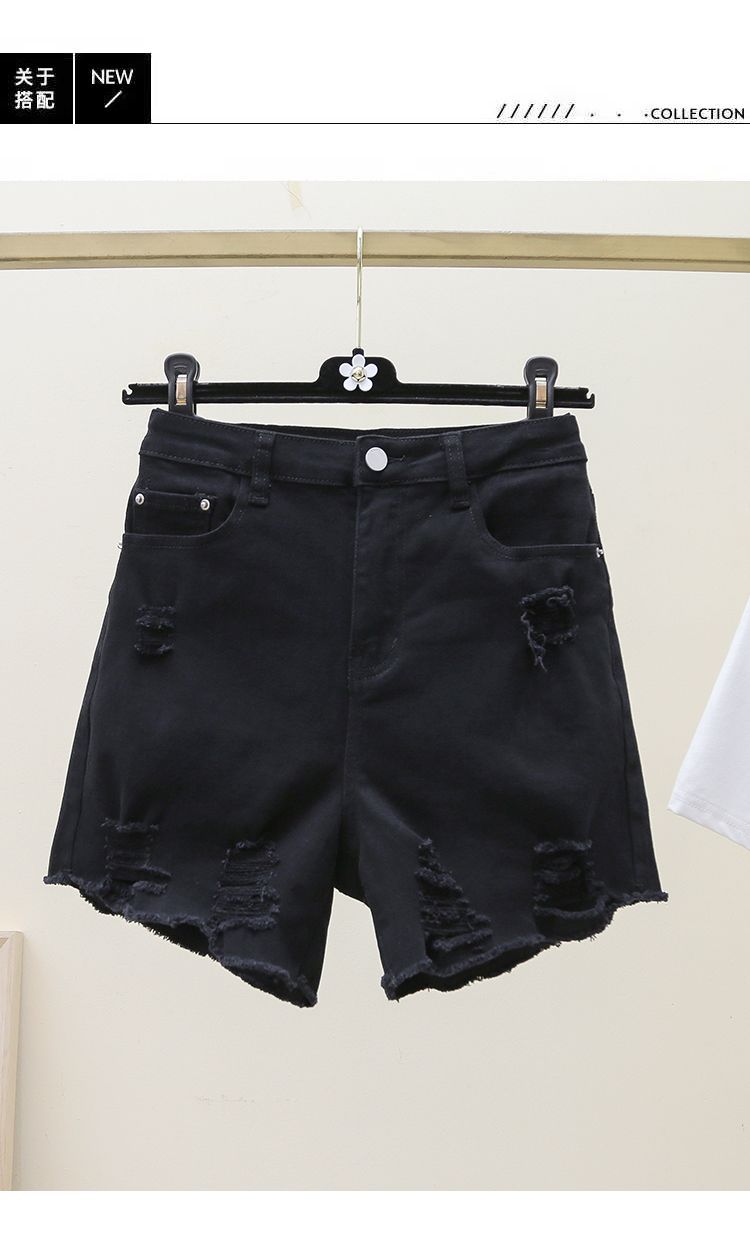 통통녀 여름 새로운 대형 플러스 사이즈 여성 구멍 스트레치 높은 허리 데님 반바지 느슨한 A 라인 바지스토어 가기