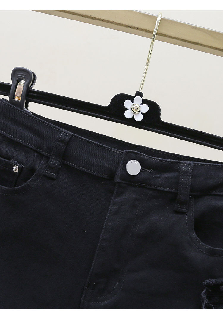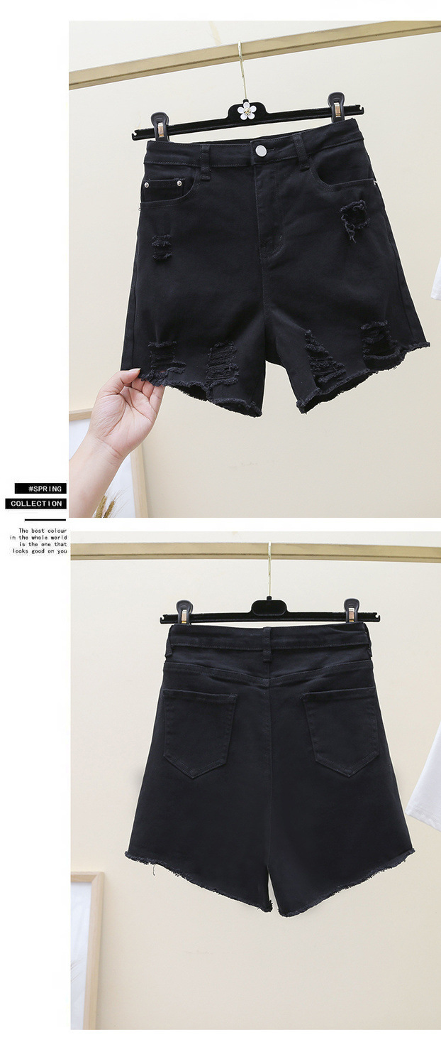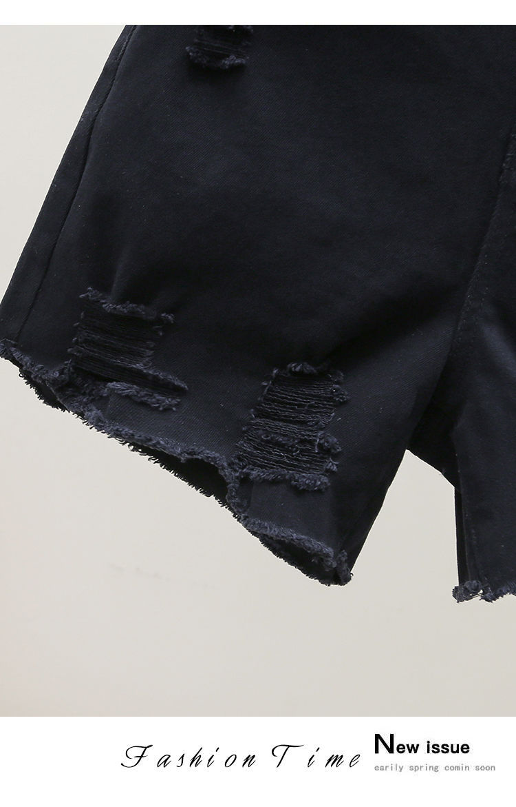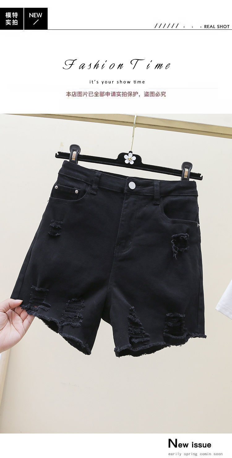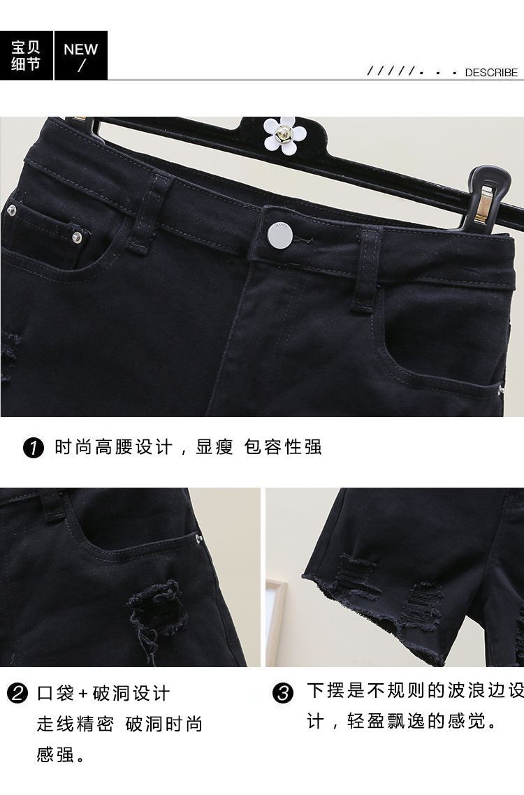 통통녀 여름 새로운 대형 플러스 사이즈 여성 구멍 스트레치 높은 허리 데님 반바지 느슨한 A 라인 바지스토어 가기