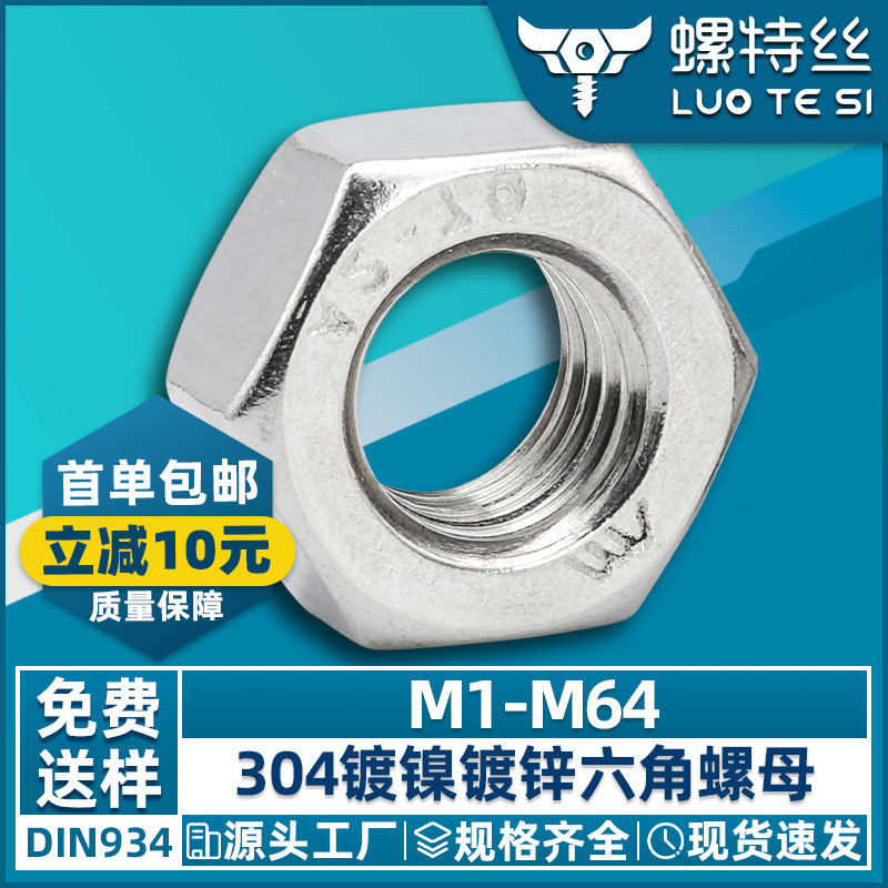 304 스테인레스 스틸 육각 너트 도매 니켈 도금 아연 도금 나사 매칭 너트 캡 M2M3M4M5M6M8스토어 가기