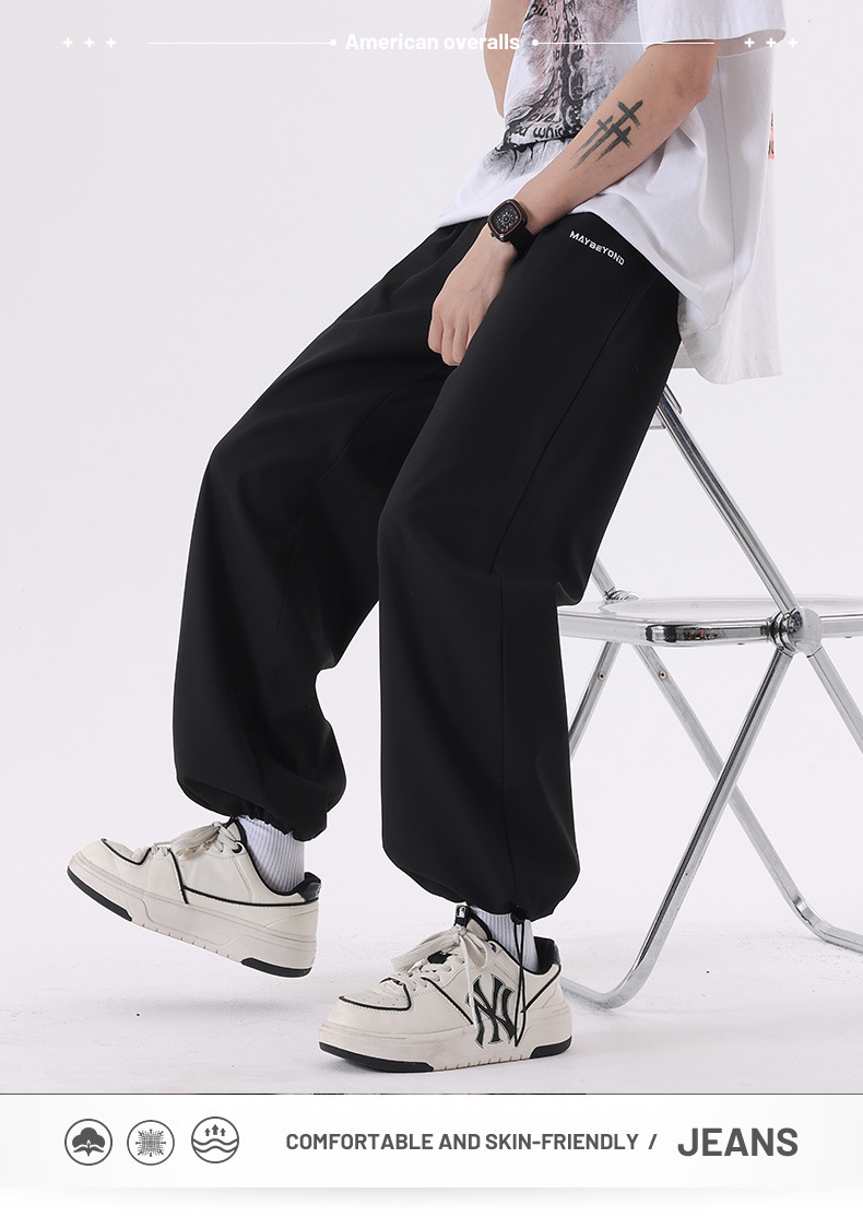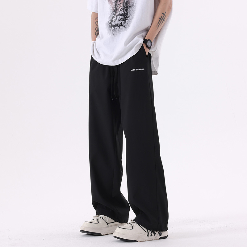 남성용 아이스 실크 바지, 남성용 바지, 캐주얼 바지, 얇은 통기성 스트레이트 팬츠, 아이스 실크 바지, 남성용 여름 얇은 드레이프 바지