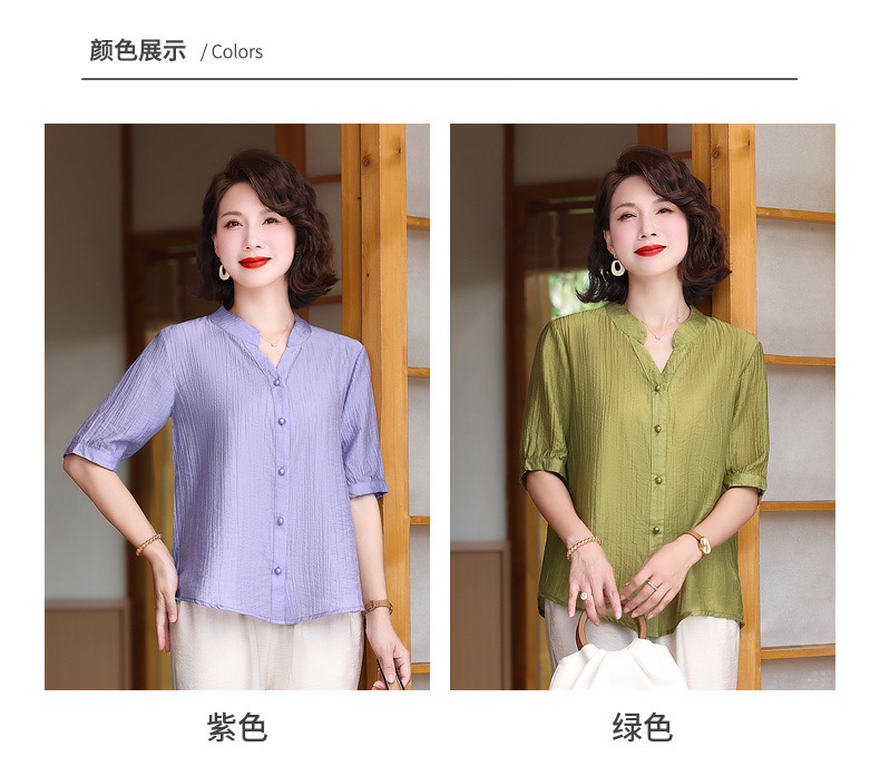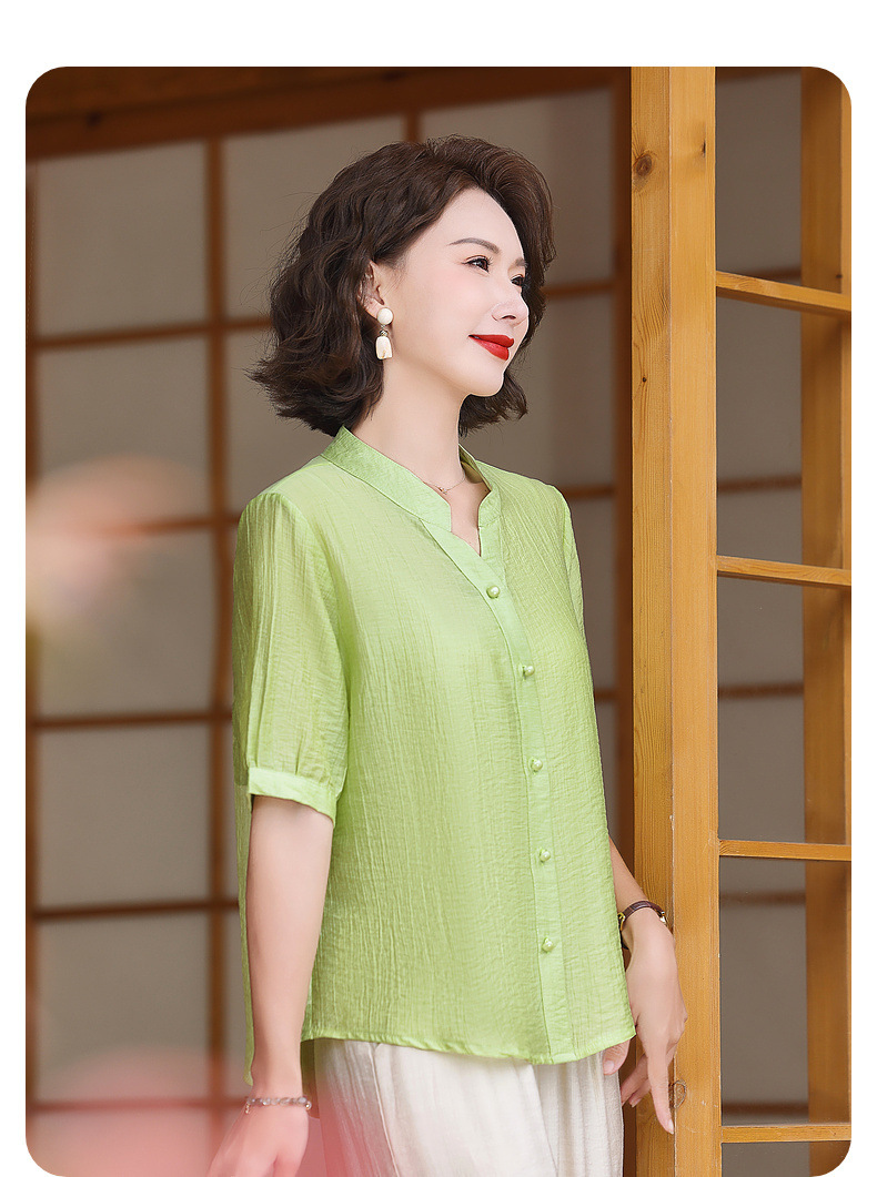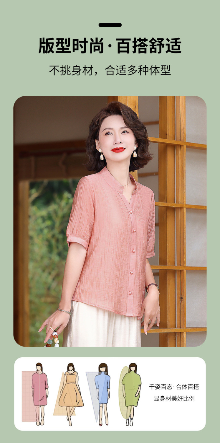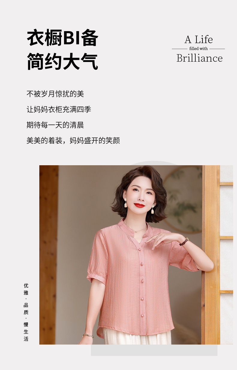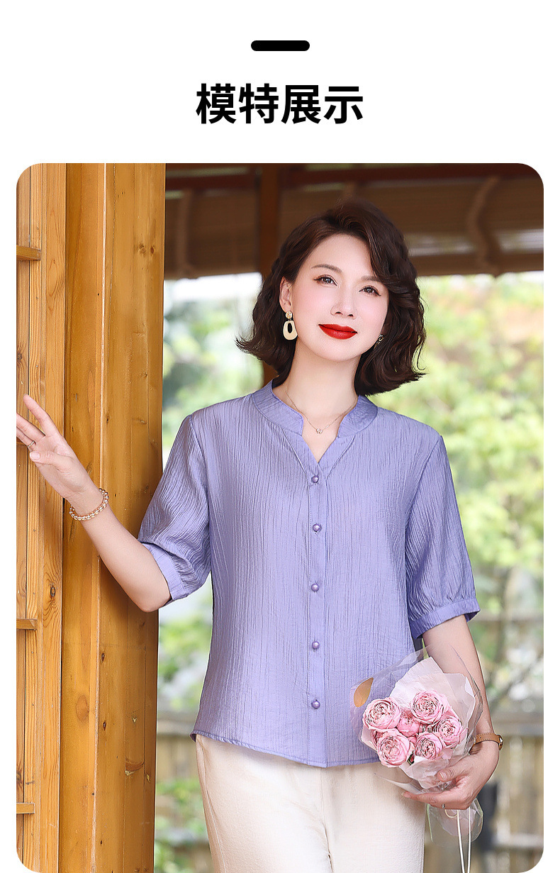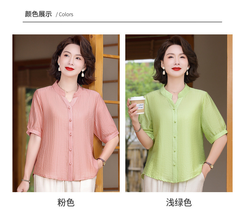 젊은 어머니의 투피스 여름 반팔 작은 셔츠 2024 새로운 외국식 중년 및 노인 여성 텐셀 셔츠 세트