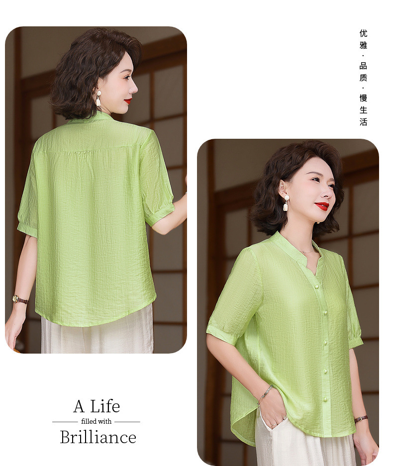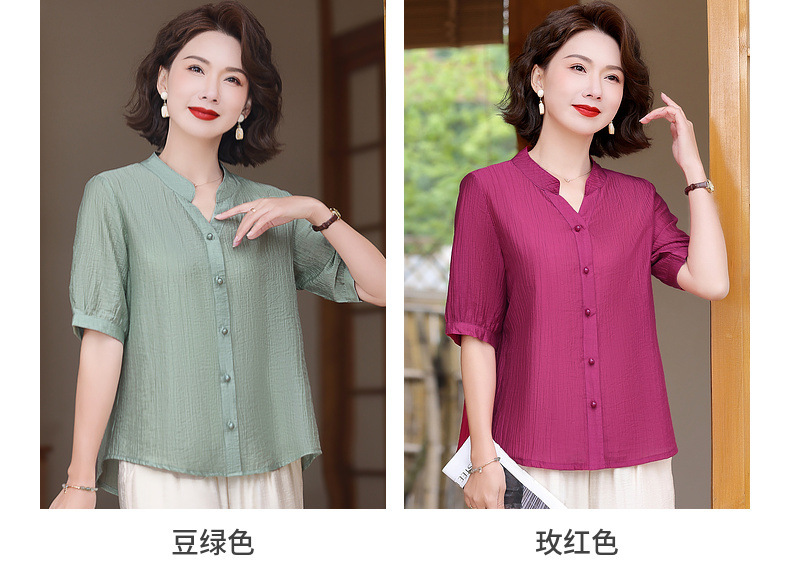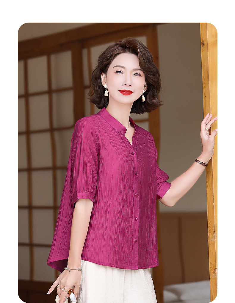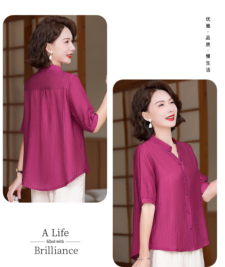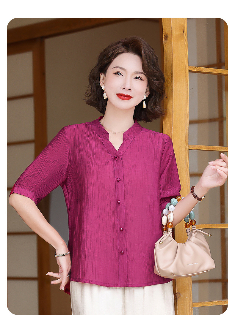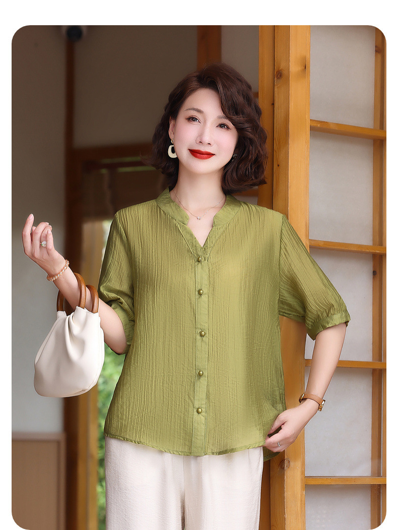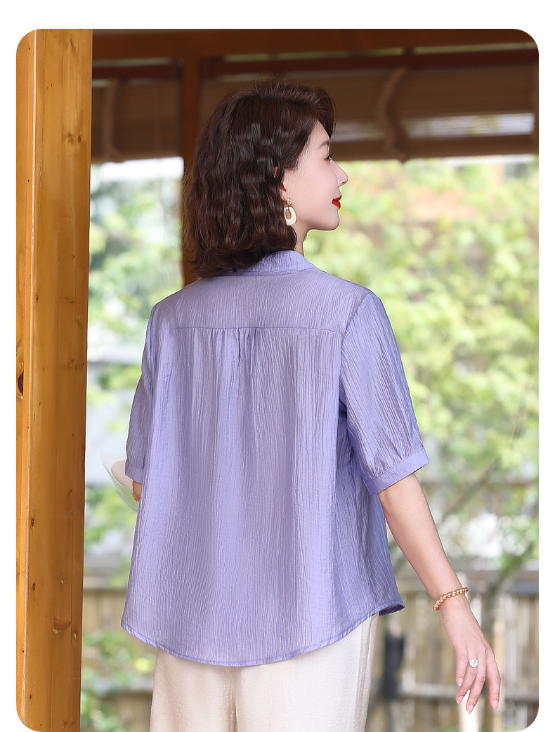 젊은 어머니의 투피스 여름 반팔 작은 셔츠 2024 새로운 외국식 중년 및 노인 여성 텐셀 셔츠 세트