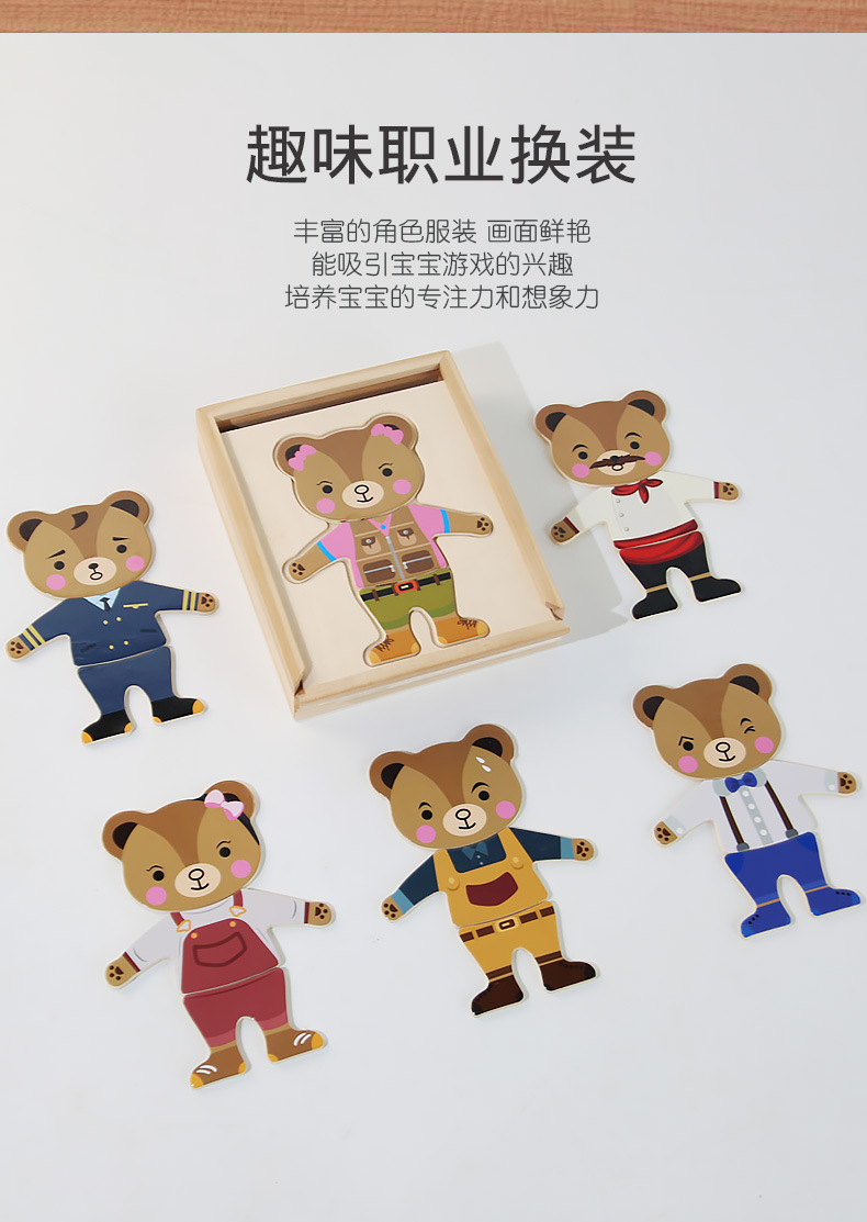 어린이 조기 교육 곰 드레스 업 교육용 입체 퍼즐 게임은 미세한 움직임을 운동시킵니다. 매칭 퍼즐 나무 장난감