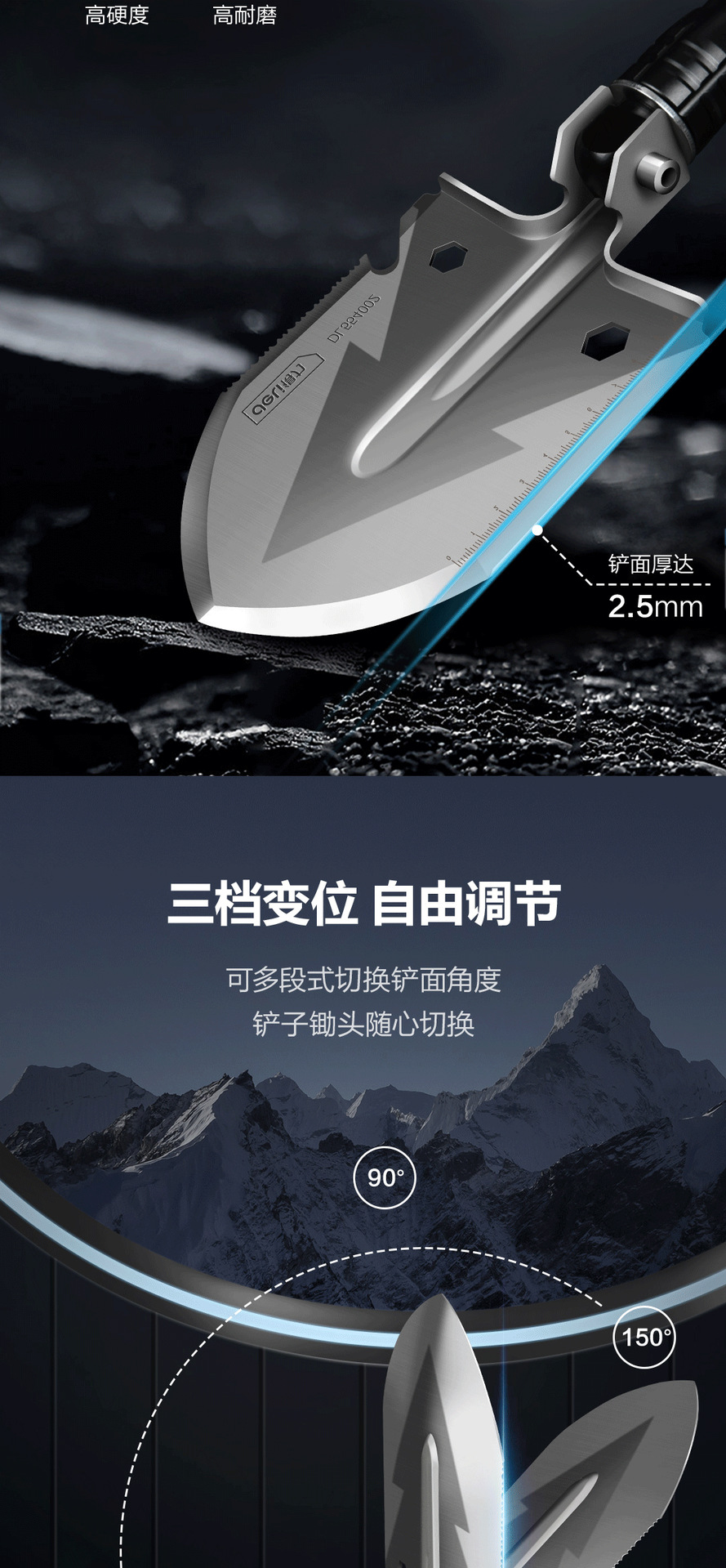 델리 DL554002 엔지니어 삽 740mm 4섹션 분리형 다기능 엔지니어 삽 휴대용 야외 자동차 홈