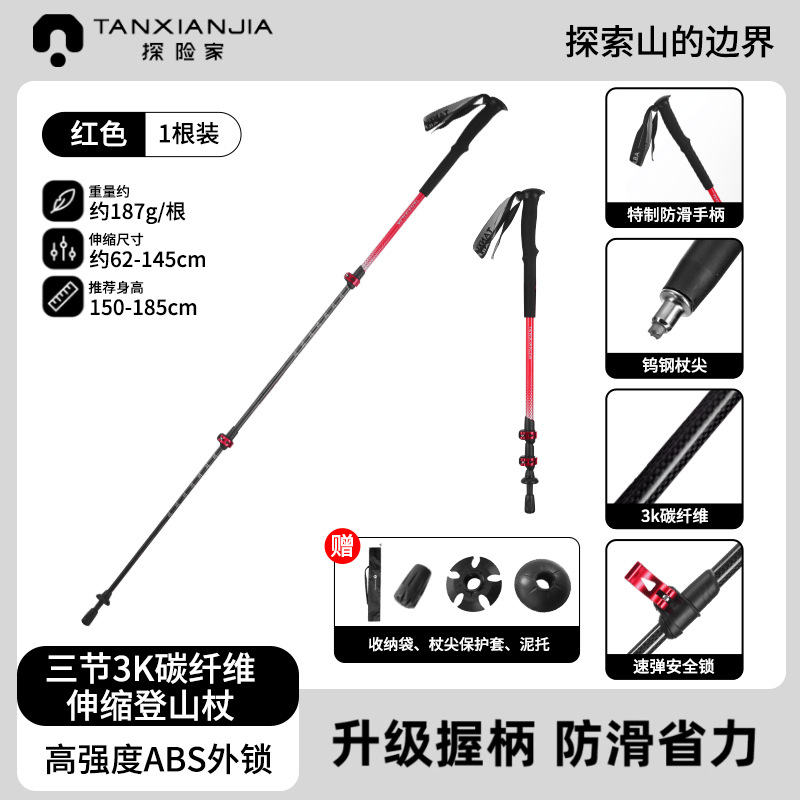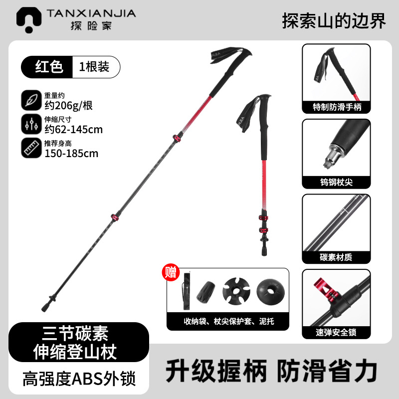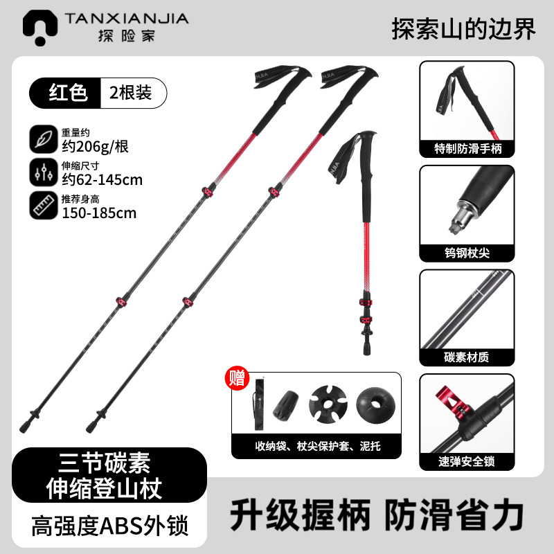 • 3단 카본 [알파인 레드] 텔레스코픽 모델 206g (2개 들이 팩)