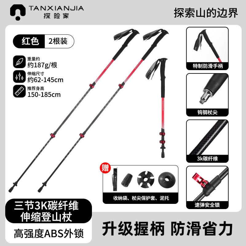 • 3K 탄소섬유 [알파인 레드] 텔레스코픽 모델 187g (2개 들이 팩)