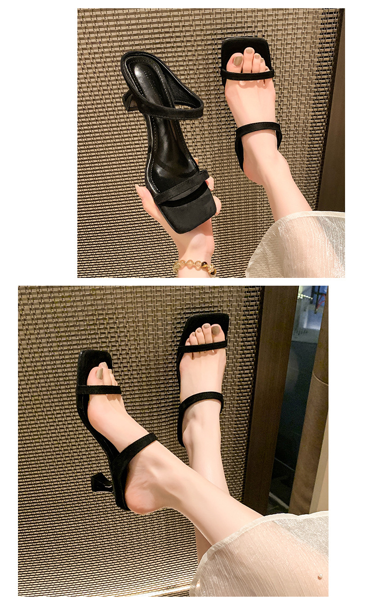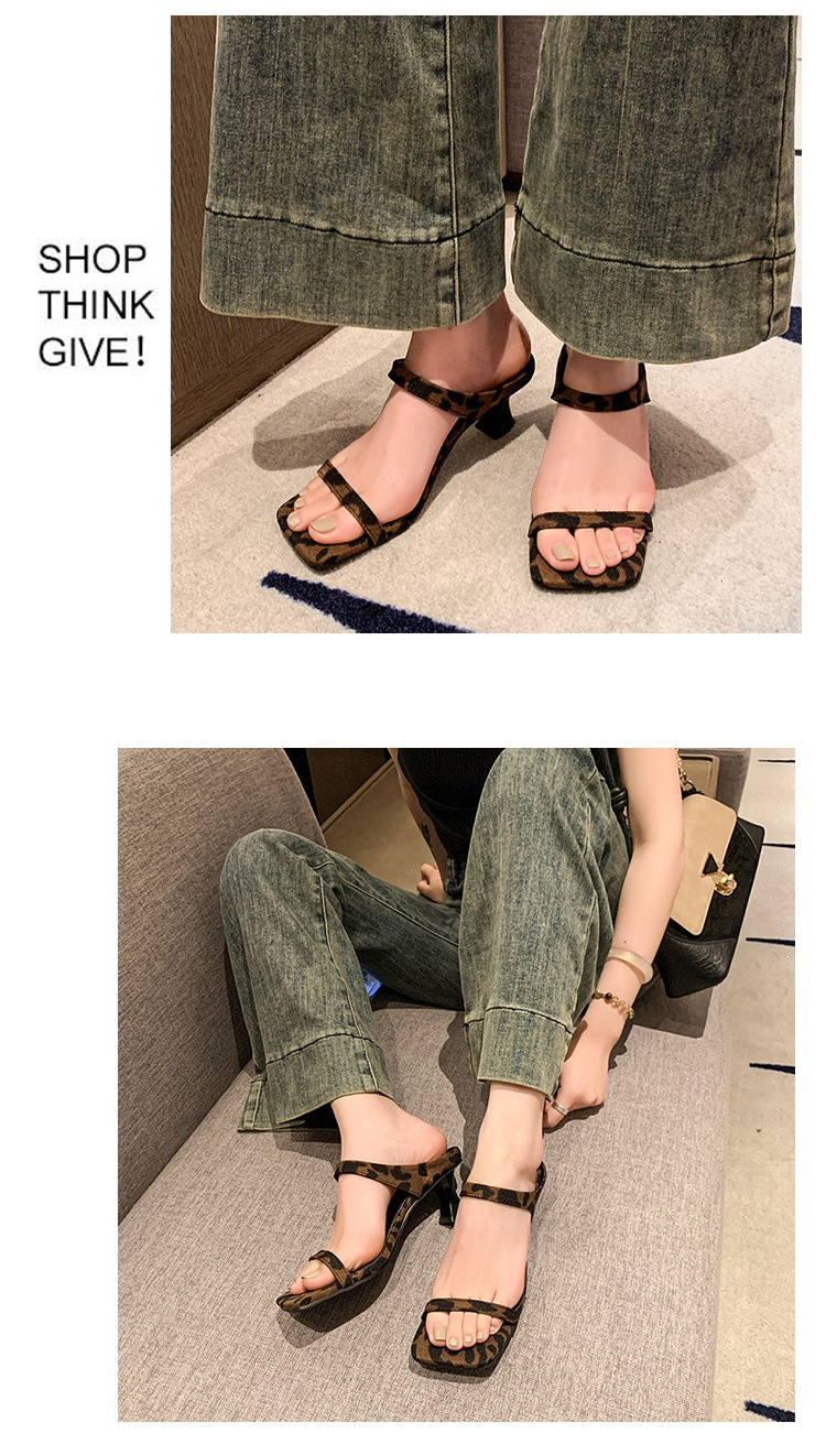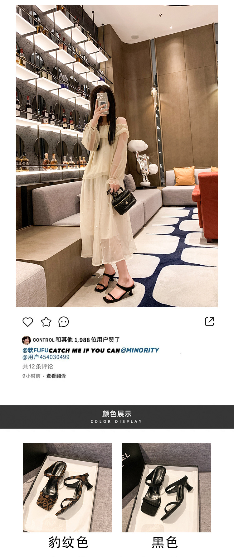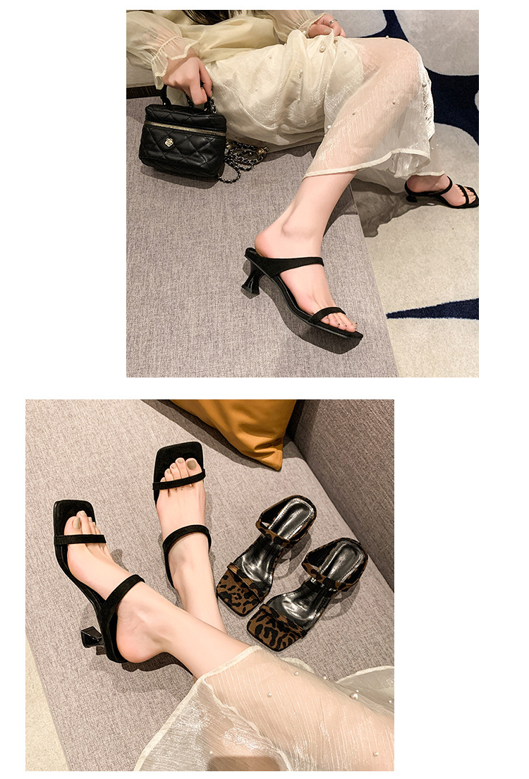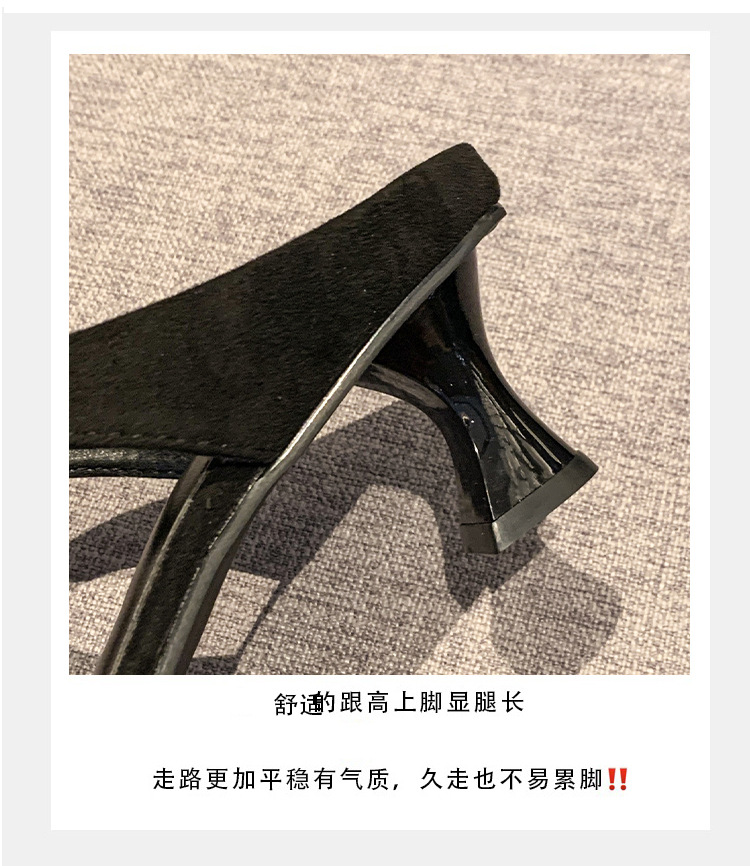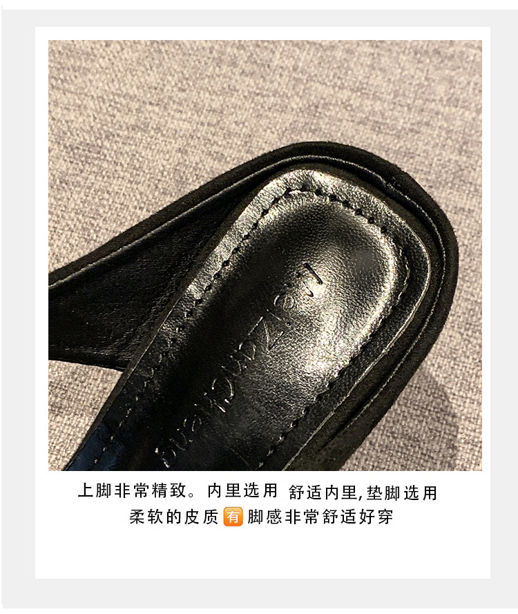 2025년 신상 여름 스타일 스퀘어 토 오픈 토 스트랩 프렌치 슬리퍼 여성 캐주얼 슬립온 말굽 힐 여성화스토어 가기
