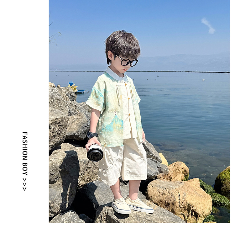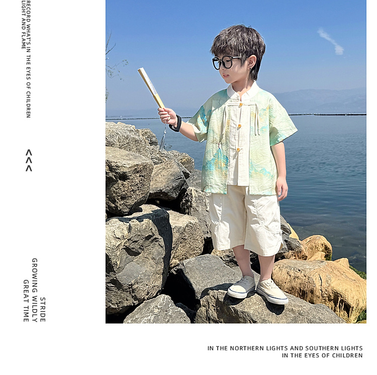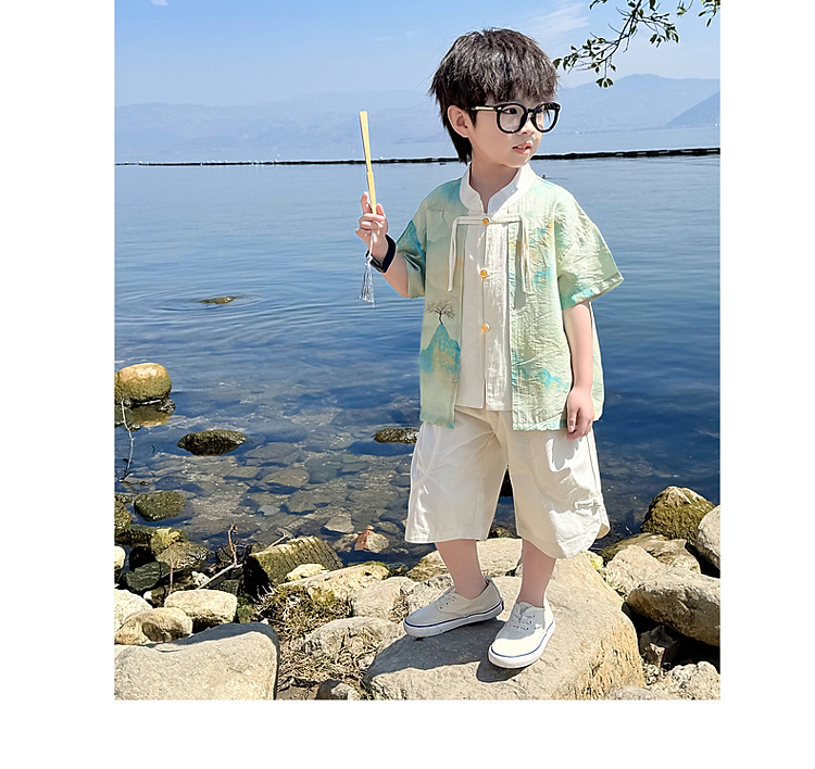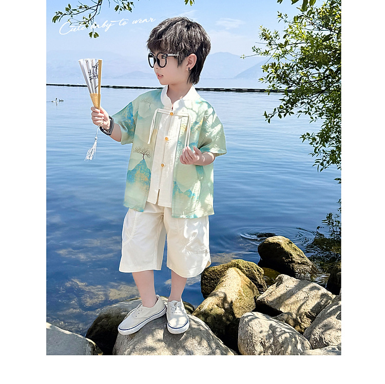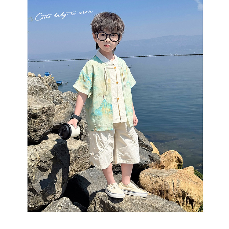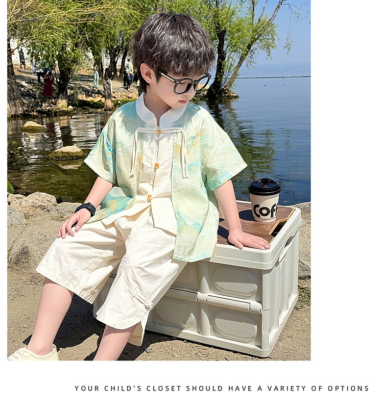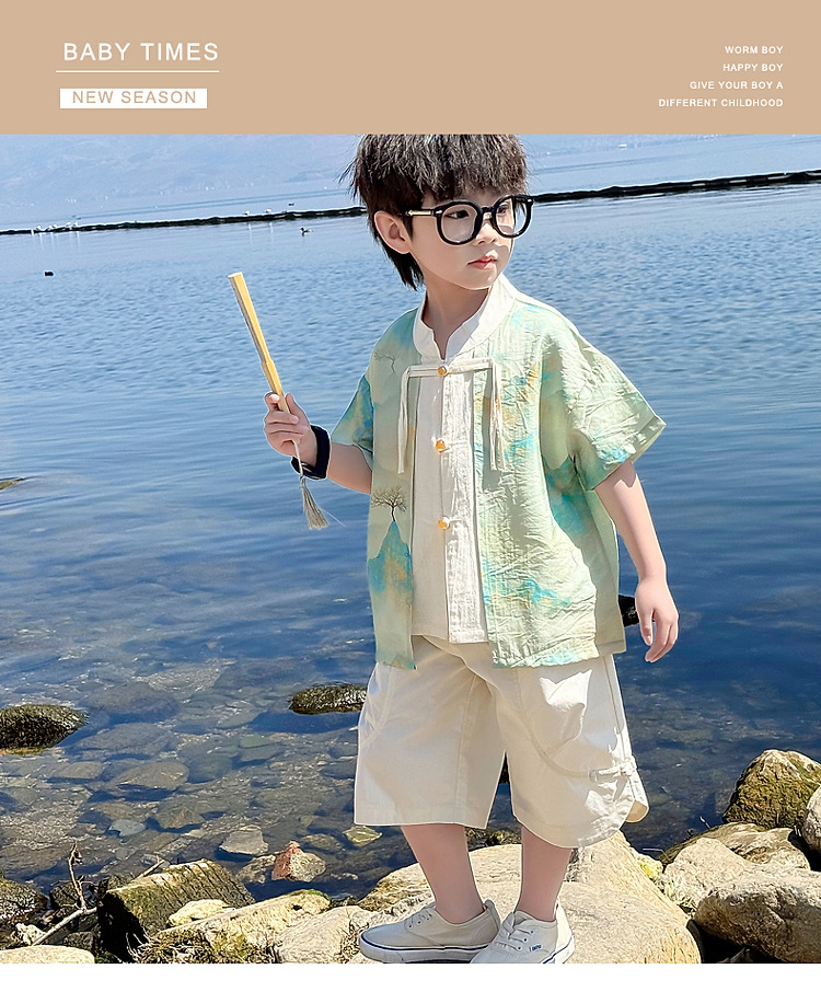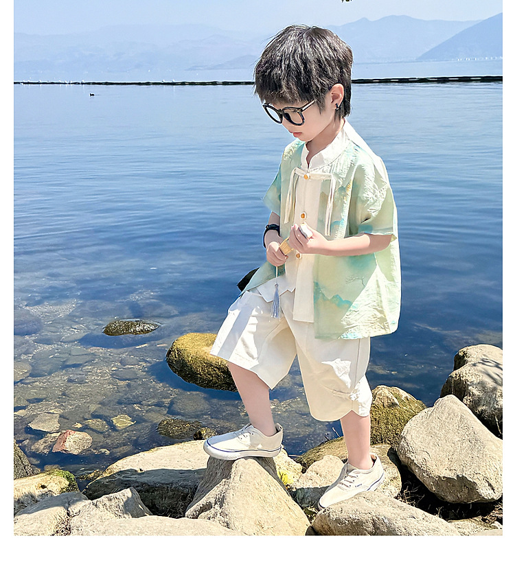 소년의 여름 옷 한푸 세트 2025 새로운 어린이 서양식 중국 스타일 탕 세트 소년을위한 새로운 중국 짧은 소매