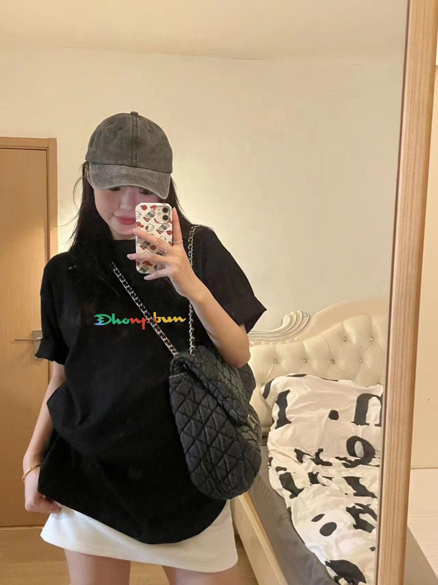 🌟 姐妹们,快来看!这款彩虹印花黑色纯棉短袖T恤,简直是夏日必备神器!🌈