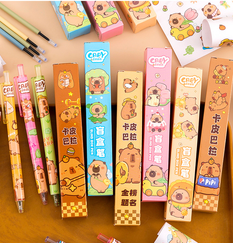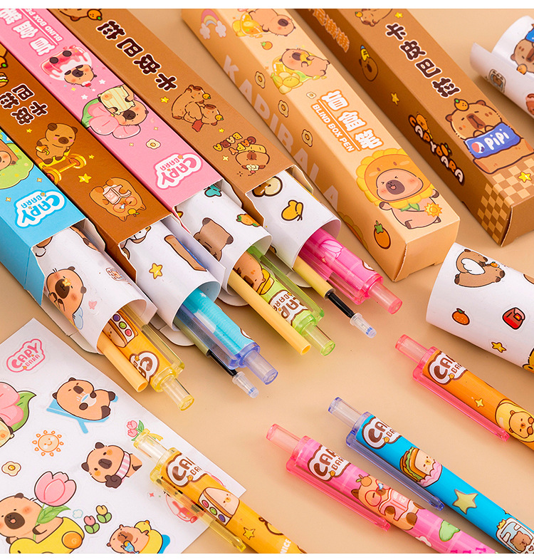 새로운 만화 카피 바라 블라인드 박스 펜 카비발라 동물 블라인드 박스 펜 그리기 학생 프레스 젤 펜 도매스토어 가기