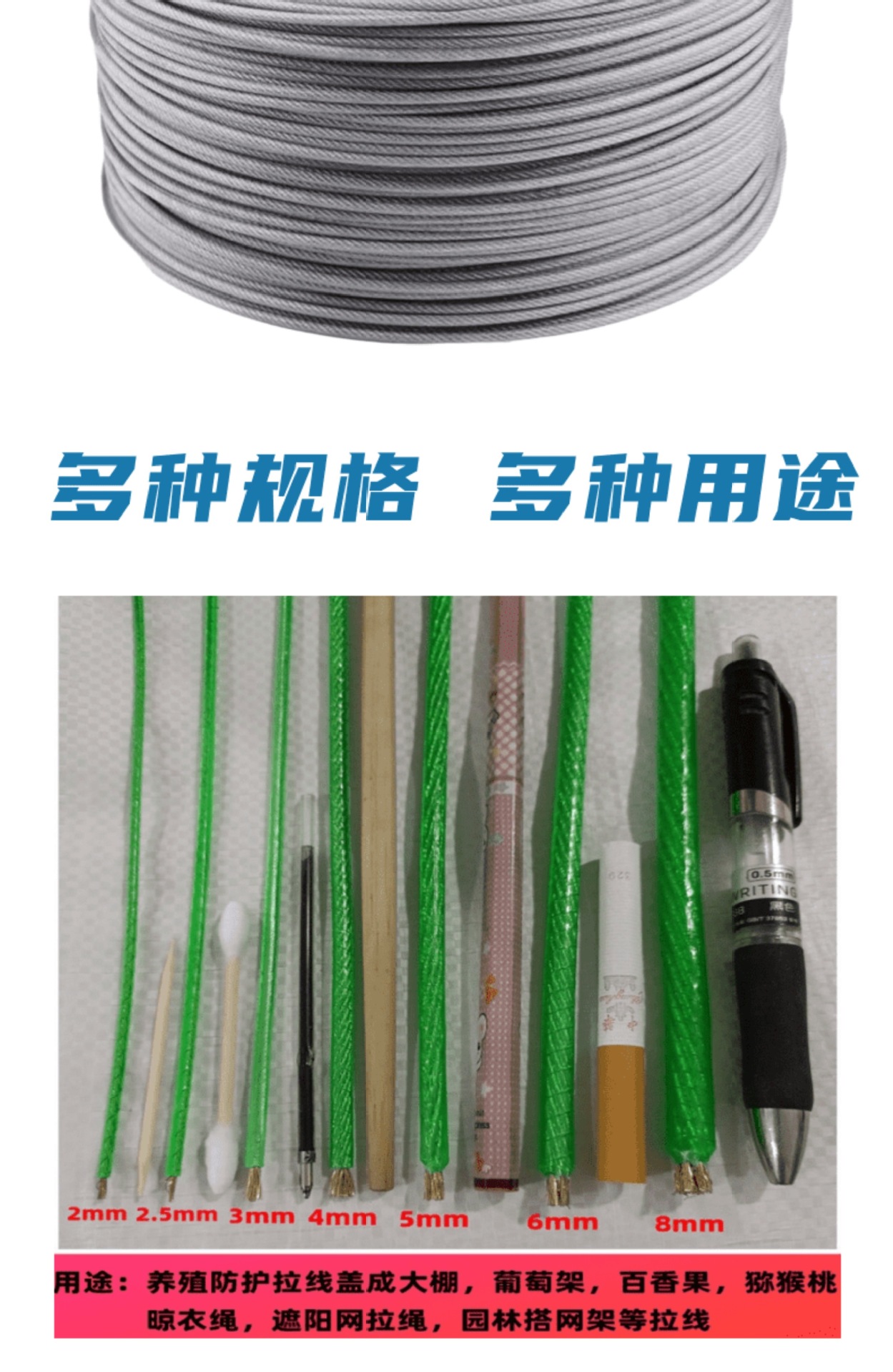 • 업그레이드된 녹색 가죽 아연 도금 플라스틱 코팅 강철 와이어 로프 3mm-5m
