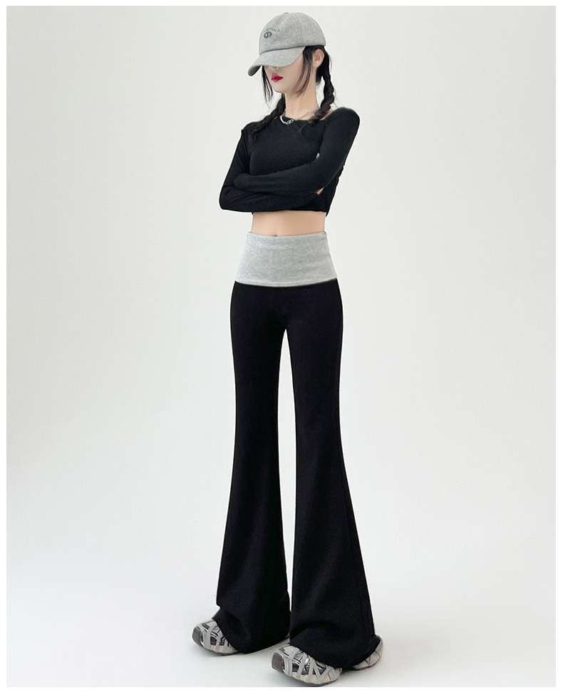 TikTok 품질 미국식 블랙 캐주얼 마이크로 플레어 바지 여자 2025 새로운 슬리밍 올 매치 스티칭 와이드 레그 스포츠 바지