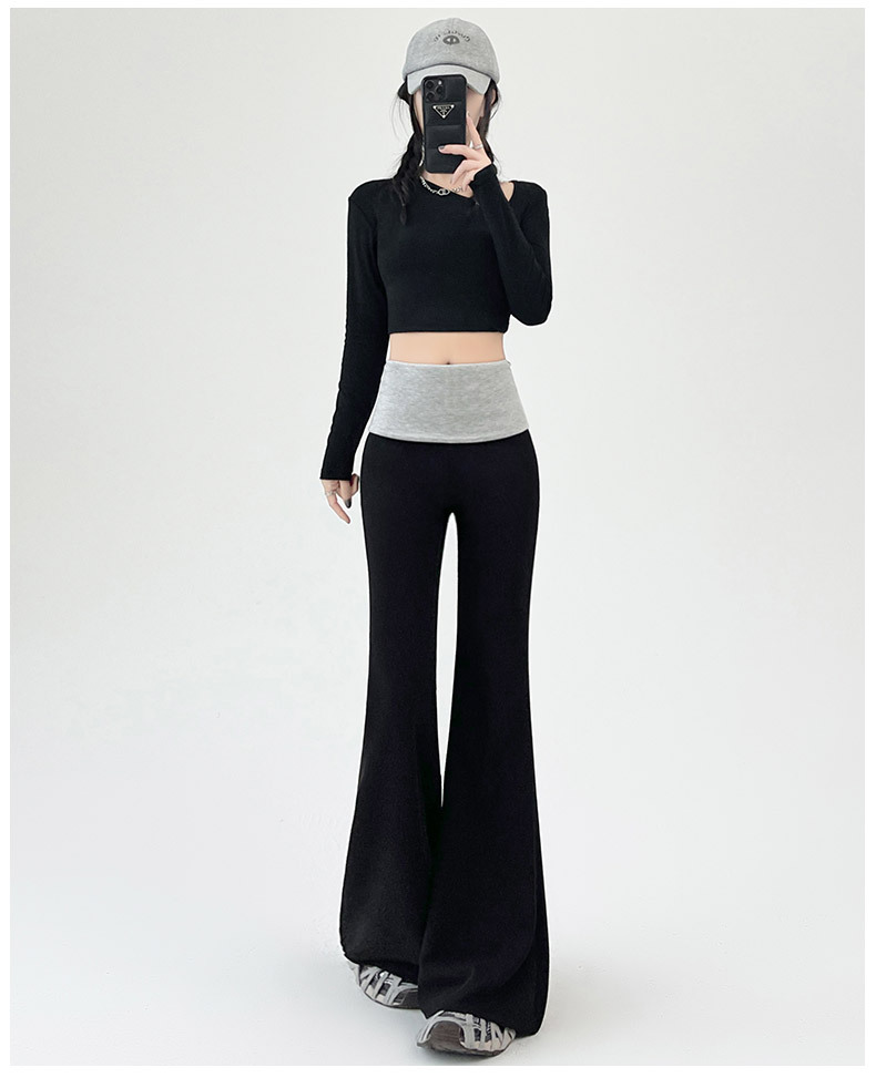 TikTok 품질 미국식 블랙 캐주얼 마이크로 플레어 바지 여자 2025 새로운 슬리밍 올 매치 스티칭 와이드 레그 스포츠 바지스토어 가기