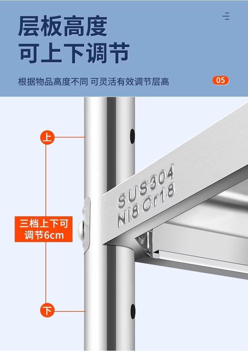 • 높이 180, 5단 조절 가능 - 304 재질, 길이 60, 폭 40