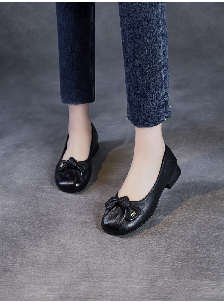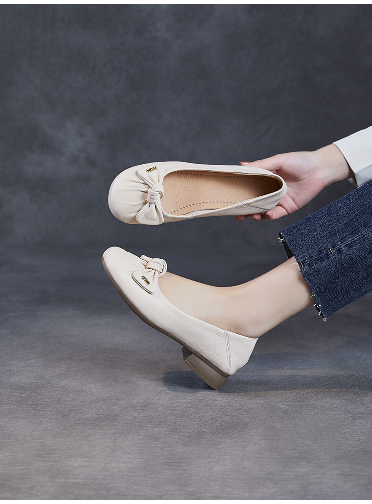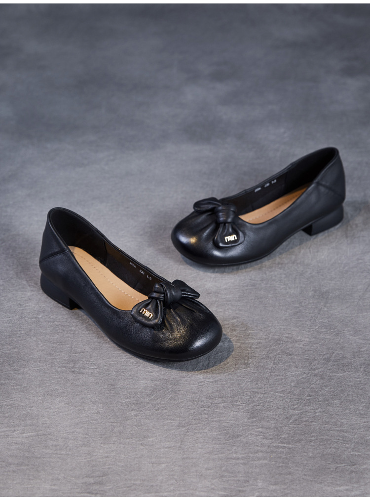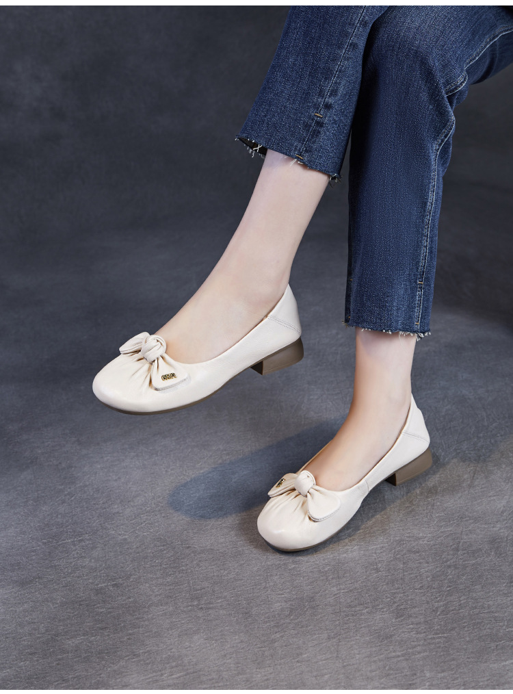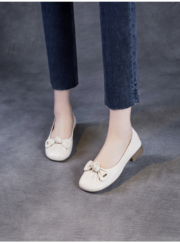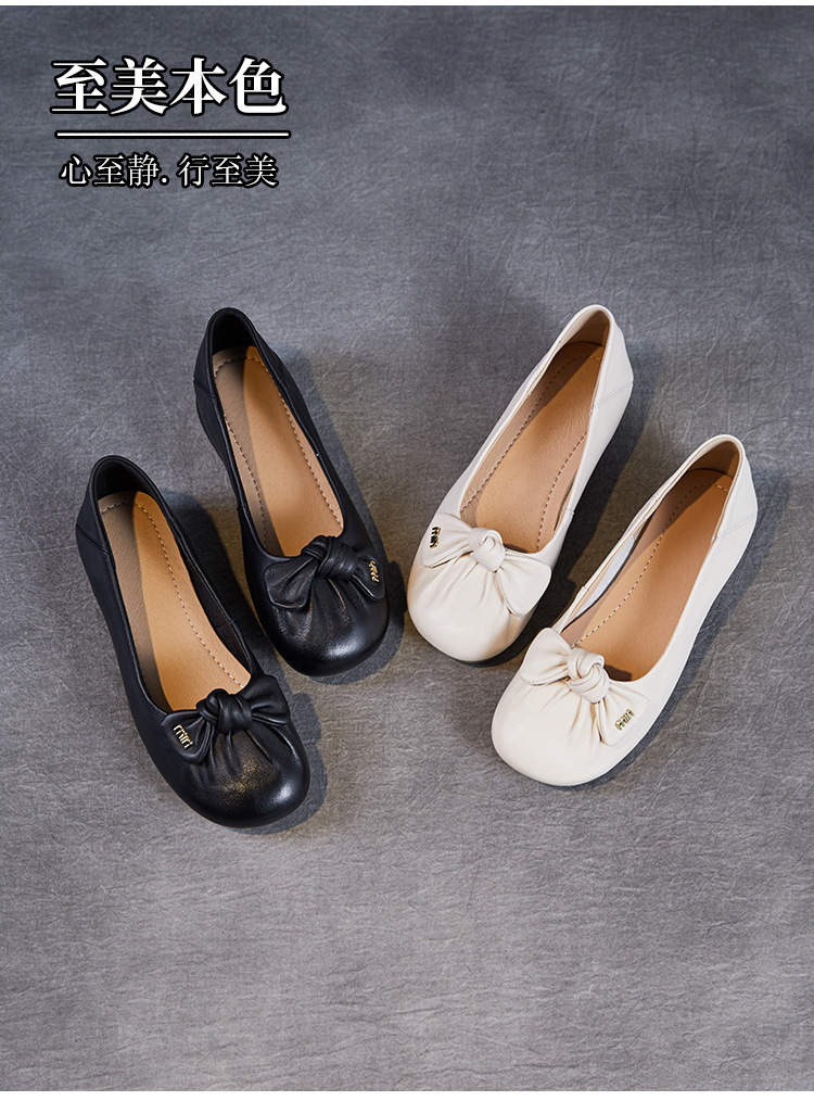 양가죽 주름 부드러운 단독 신발 여성 봄과 여름 2025 새로운 프랑스 스타일 에그 롤 신발 활 얕은 입 부드러운 단독 신발