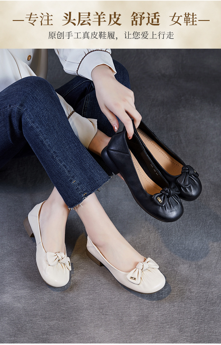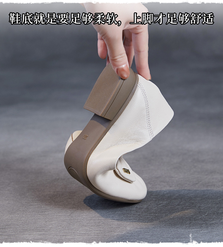 양가죽 주름 부드러운 단독 신발 여성 봄과 여름 2025 새로운 프랑스 스타일 에그 롤 신발 활 얕은 입 부드러운 단독 신발스토어 가기