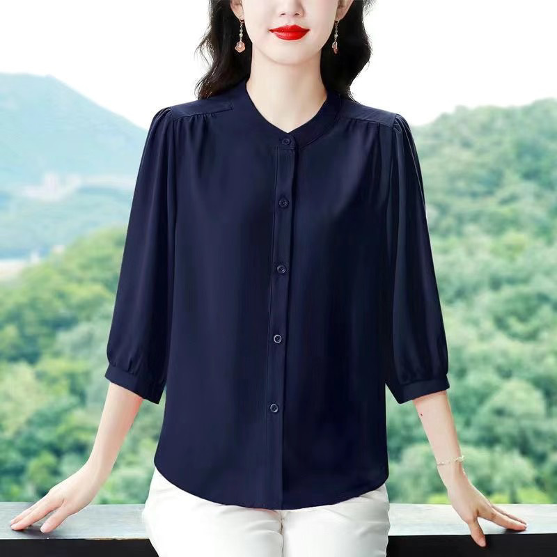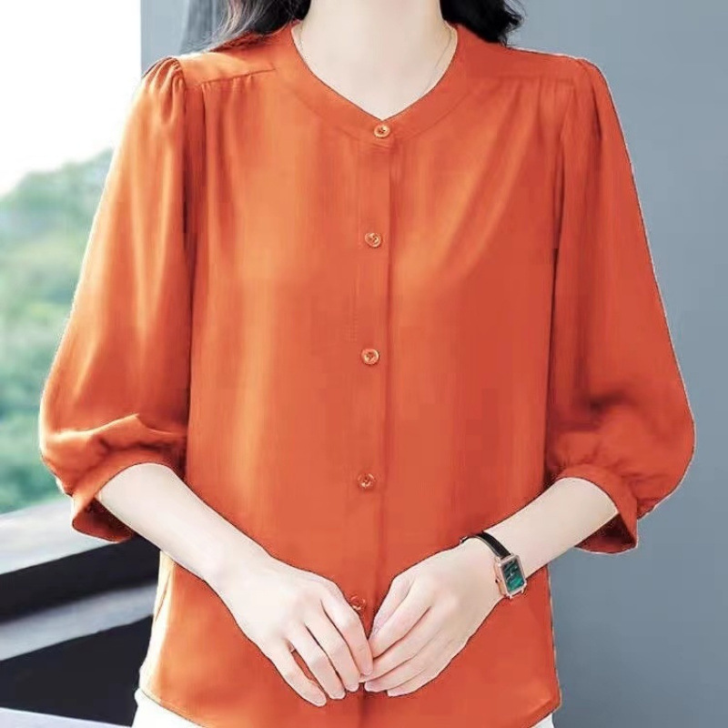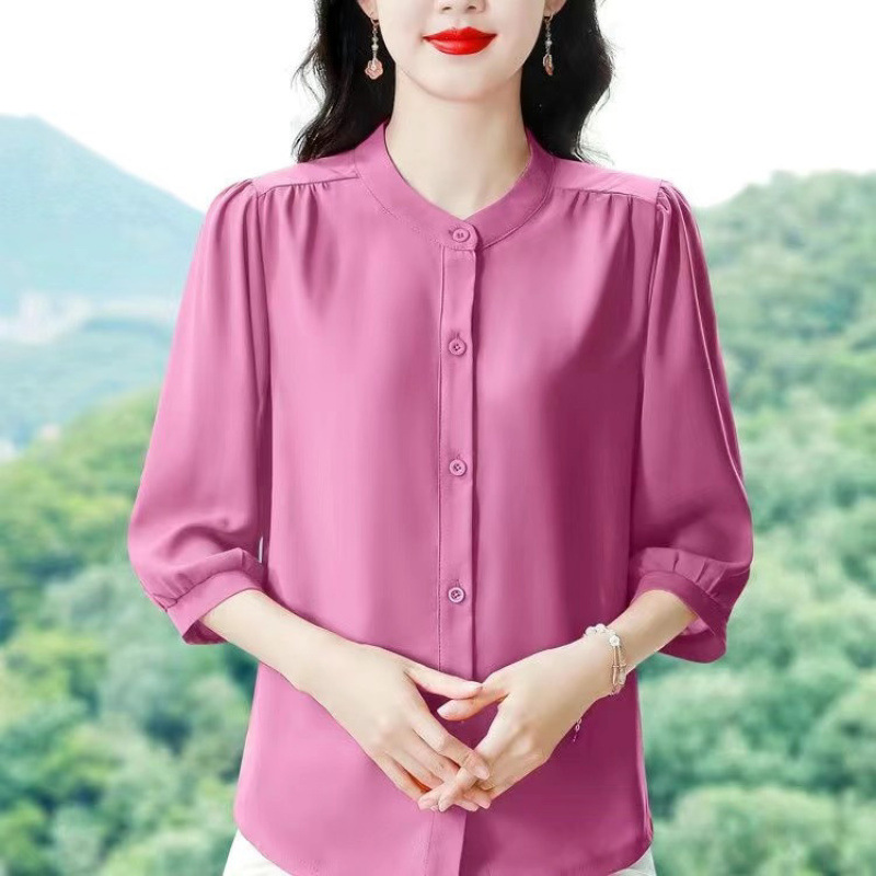 하이 엔드 쉬폰 셔츠 어머니 느슨한 여름 새로운 도착 작은 셔츠 7 점 소매 솔리드 컬러 여성을위한 미드 슬리브 얇은 셔츠 탑