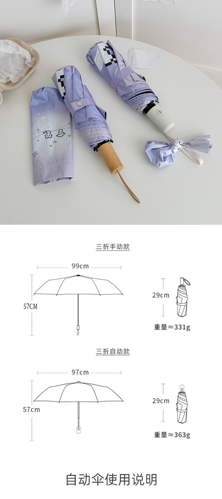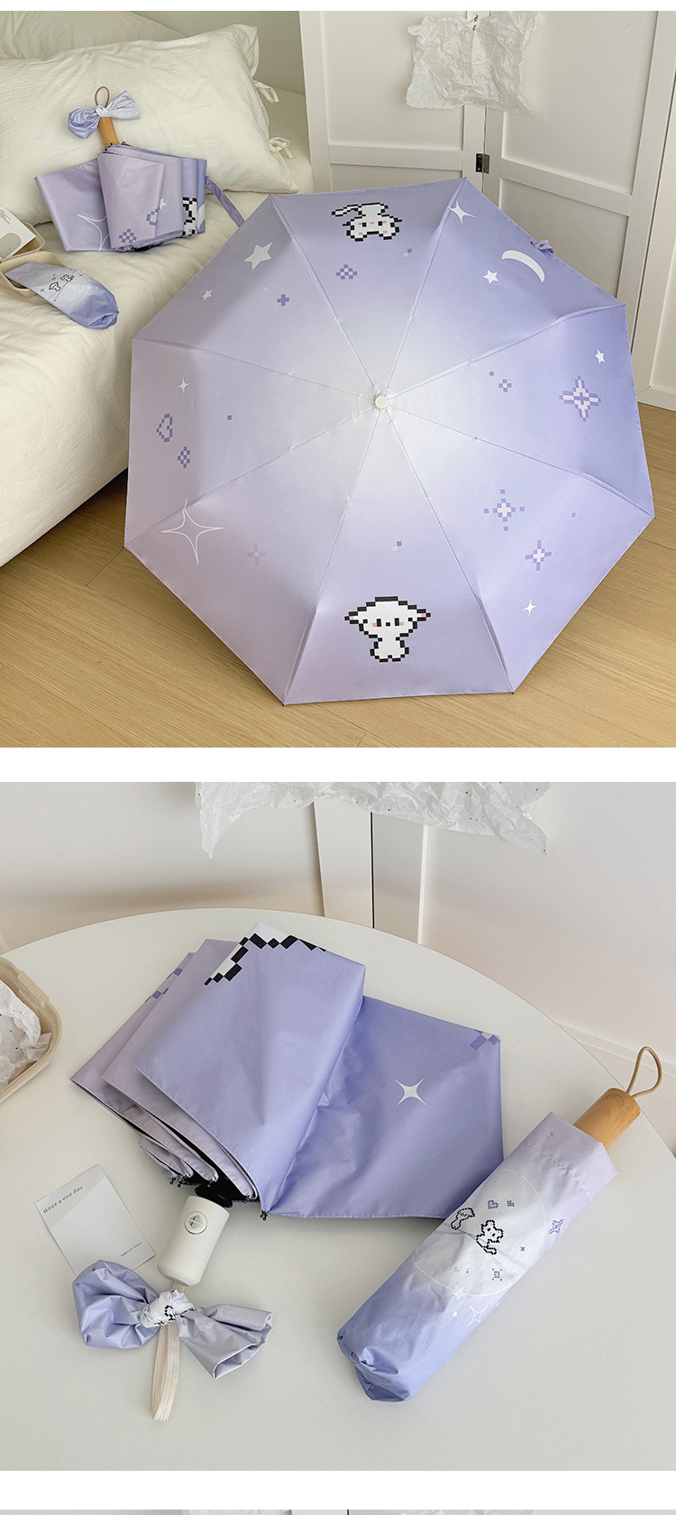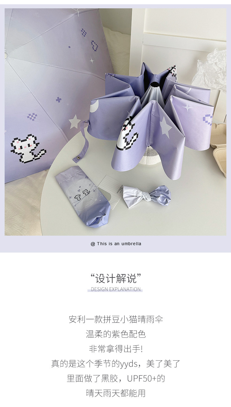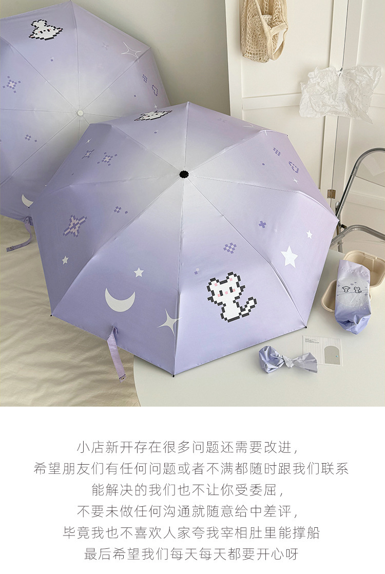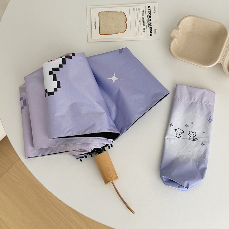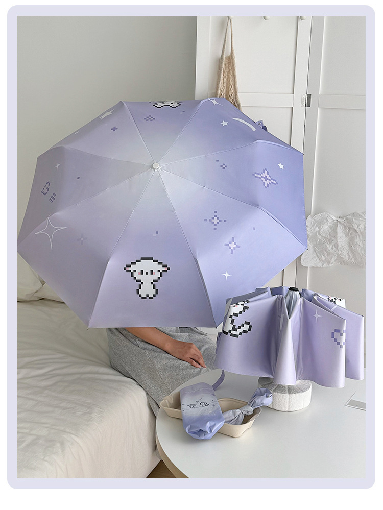 그라디언트 디지털 개 맑고 비 이중 목적 접히는 우산 자외선 방지 블랙 고무 태양 우산 휴대용 작은 햇살 우산