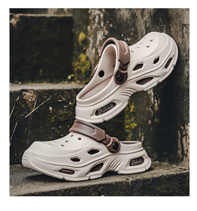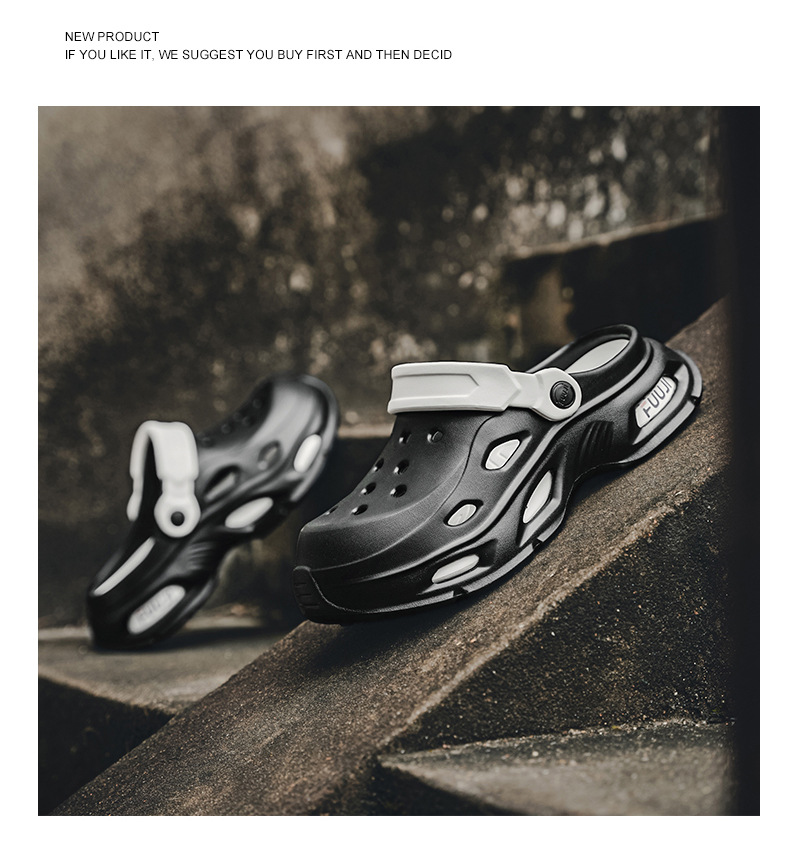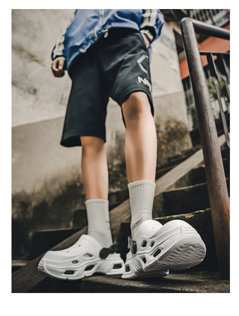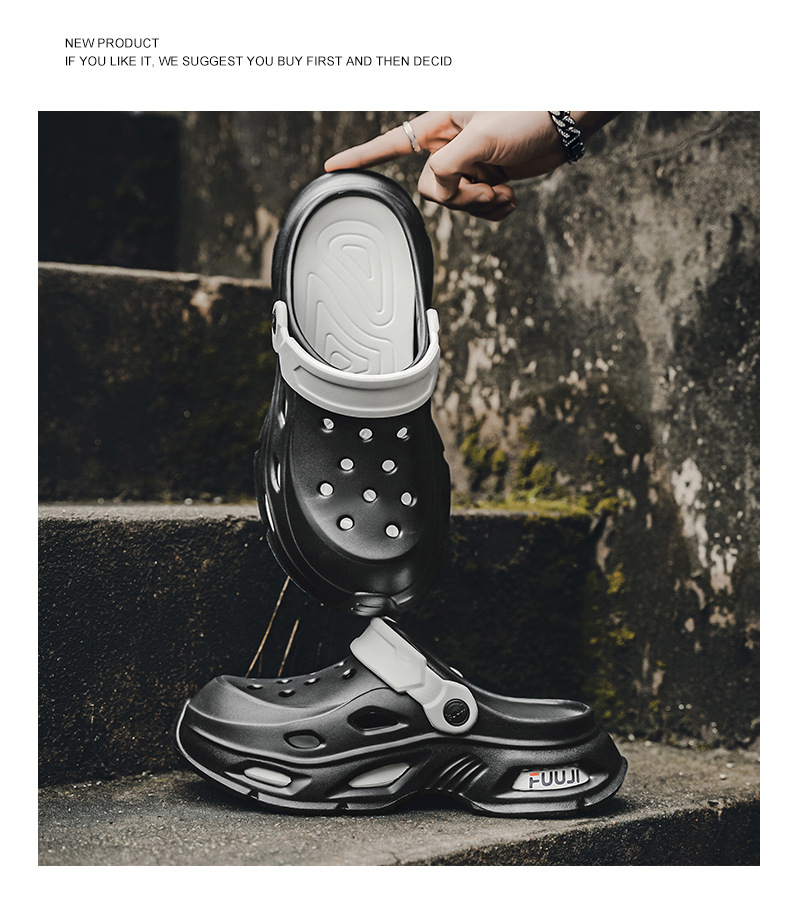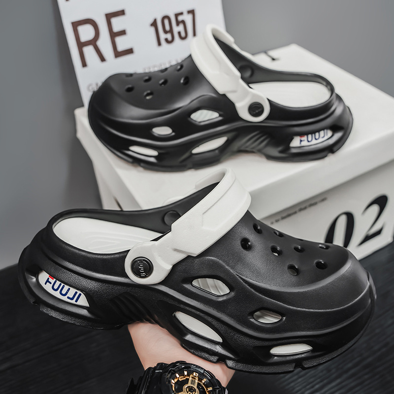 남성용 새로운 스타일의 편안하고 트렌디하며 패셔너블한 데일리 캐주얼 라운드 투 두꺼운 밑창 컬러 매칭 나막신 통기성 발가락 남성용 신발스토어 가기