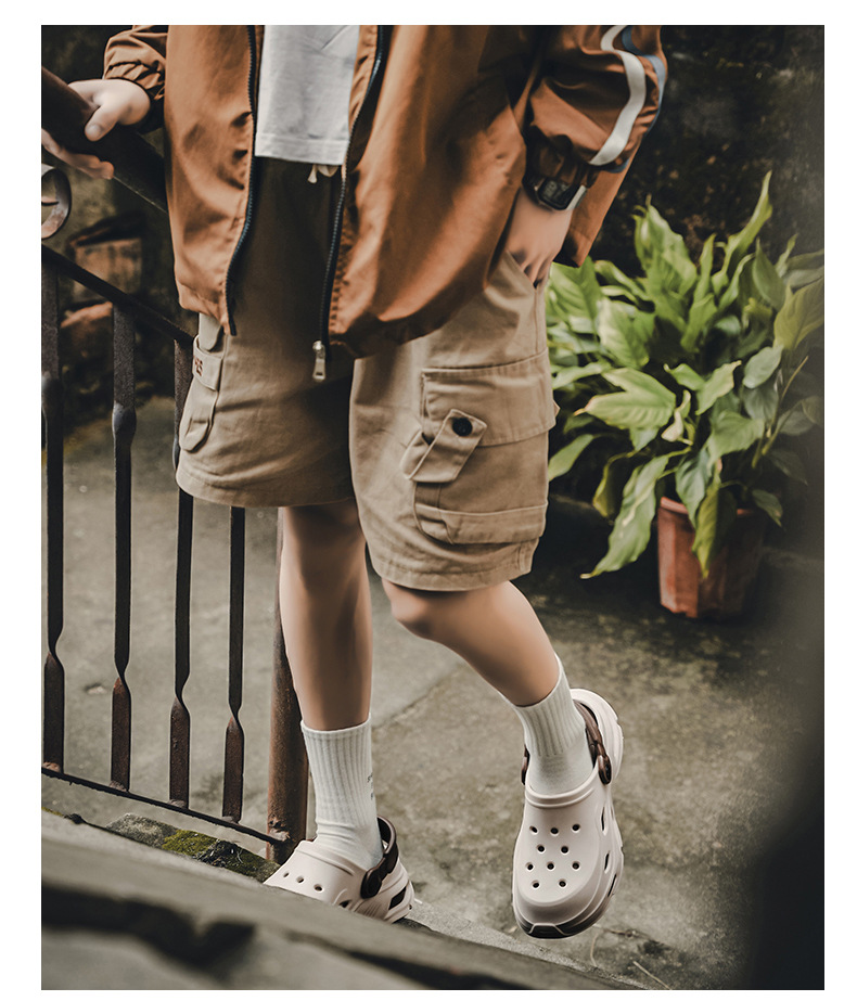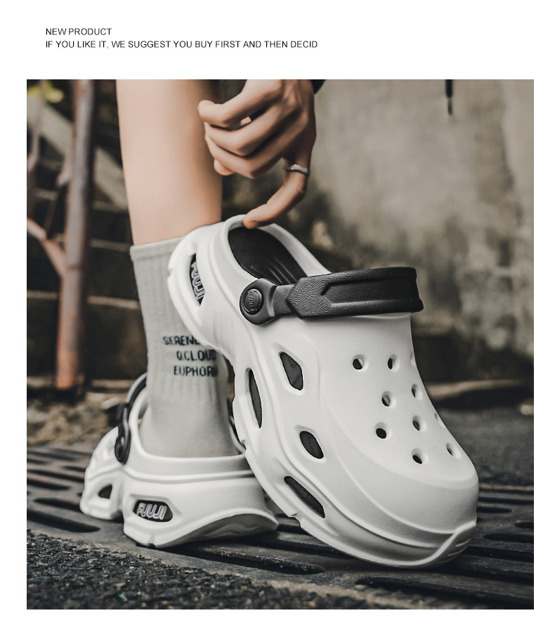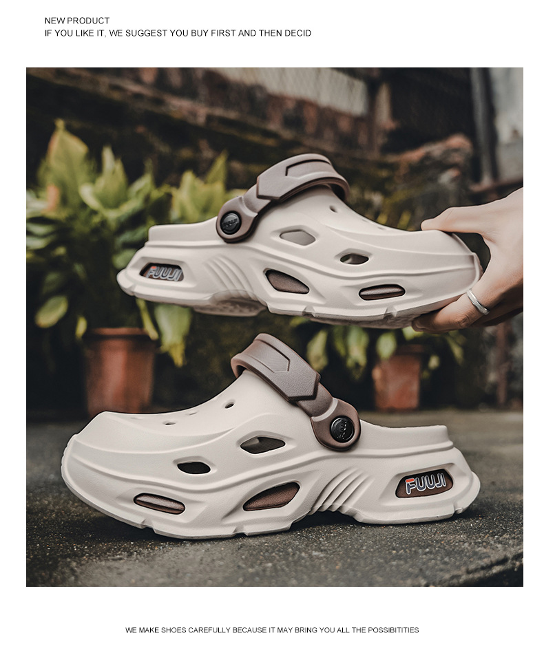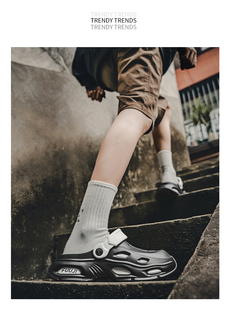 남성용 새로운 스타일의 편안하고 트렌디하며 패셔너블한 데일리 캐주얼 라운드 투 두꺼운 밑창 컬러 매칭 나막신 통기성 발가락 남성용 신발스토어 가기