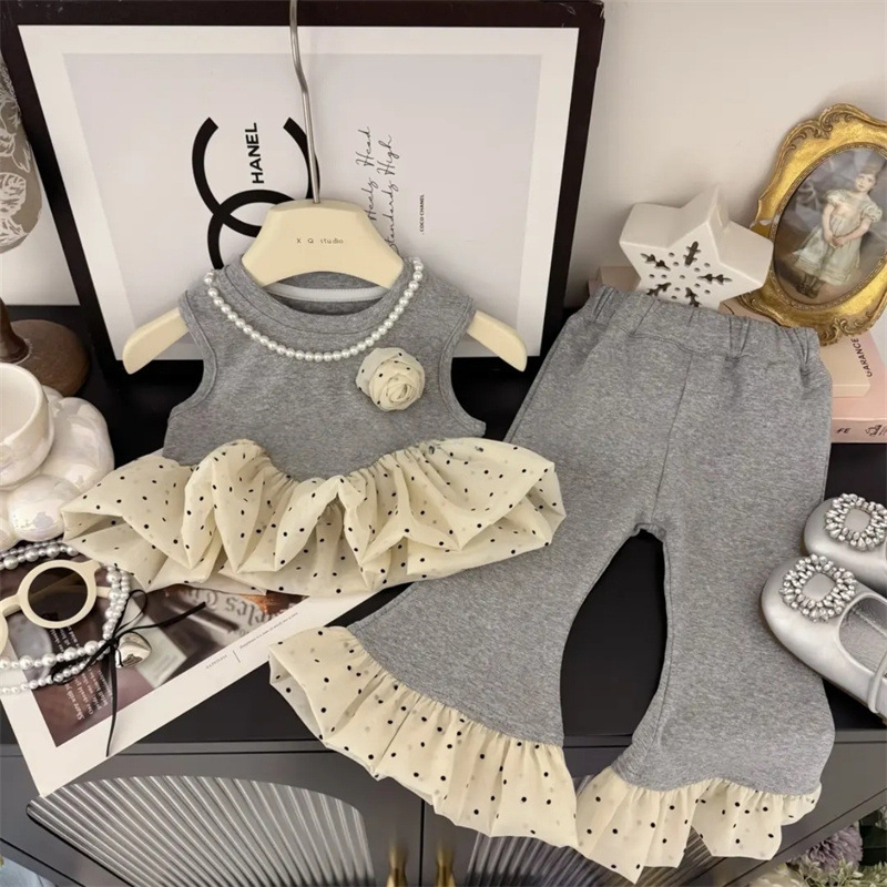 Tongxingyuan 소녀 여름 새로운 Hepburn 스타일 웨이브 포인트 조끼 9 점 플레어 팬츠 투피스 세트 외국식 패션 조수