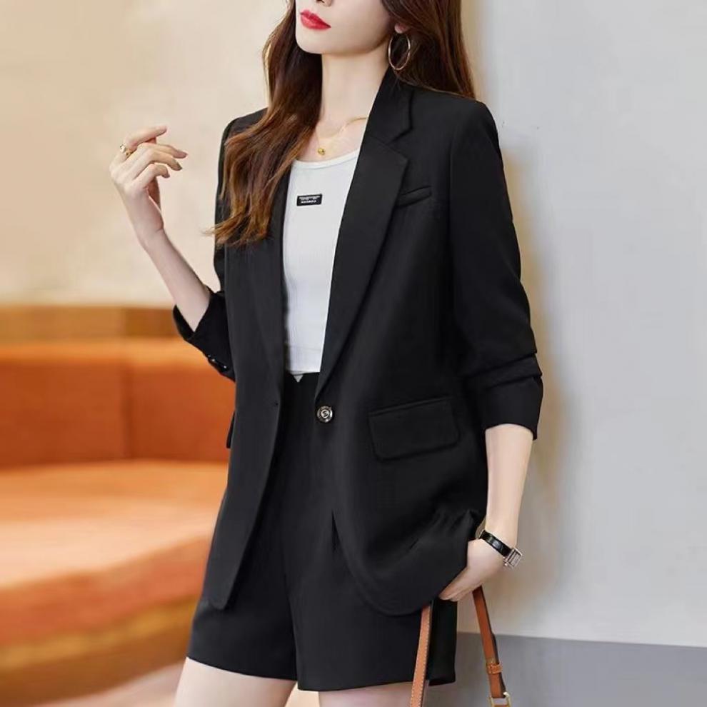 세트 재킷 디자인 2025 새로운 봄과 가을 한국 스타일 느슨한 캐주얼 우아한 작은 여성 분할 세트 탑