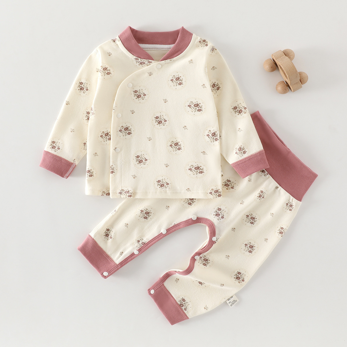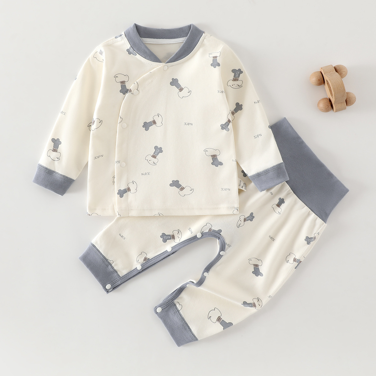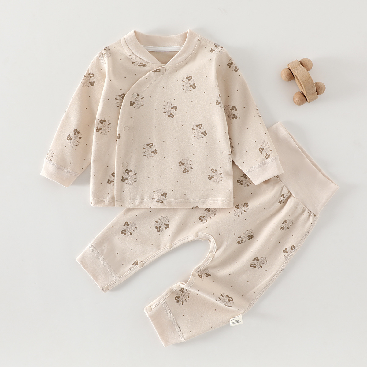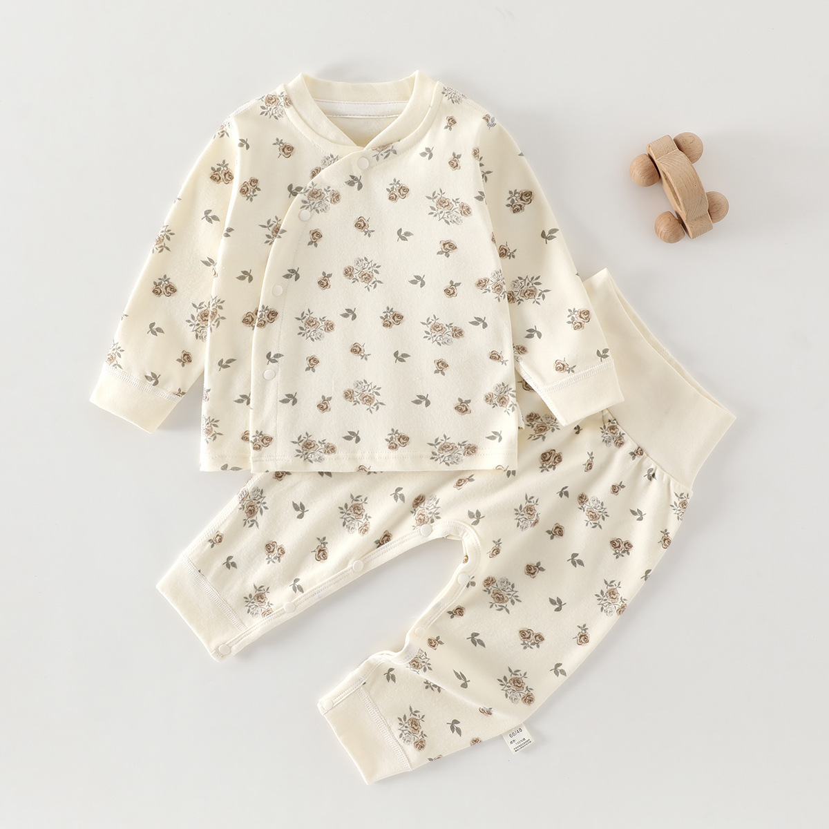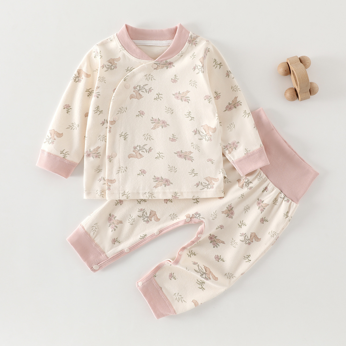 유아 높은 허리 세트 봄과 가을 배꼽 보호 2 조각 잠옷 아기의 집 옷 클래스 순수한 면베이스 내복
