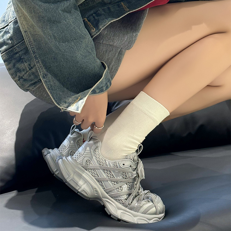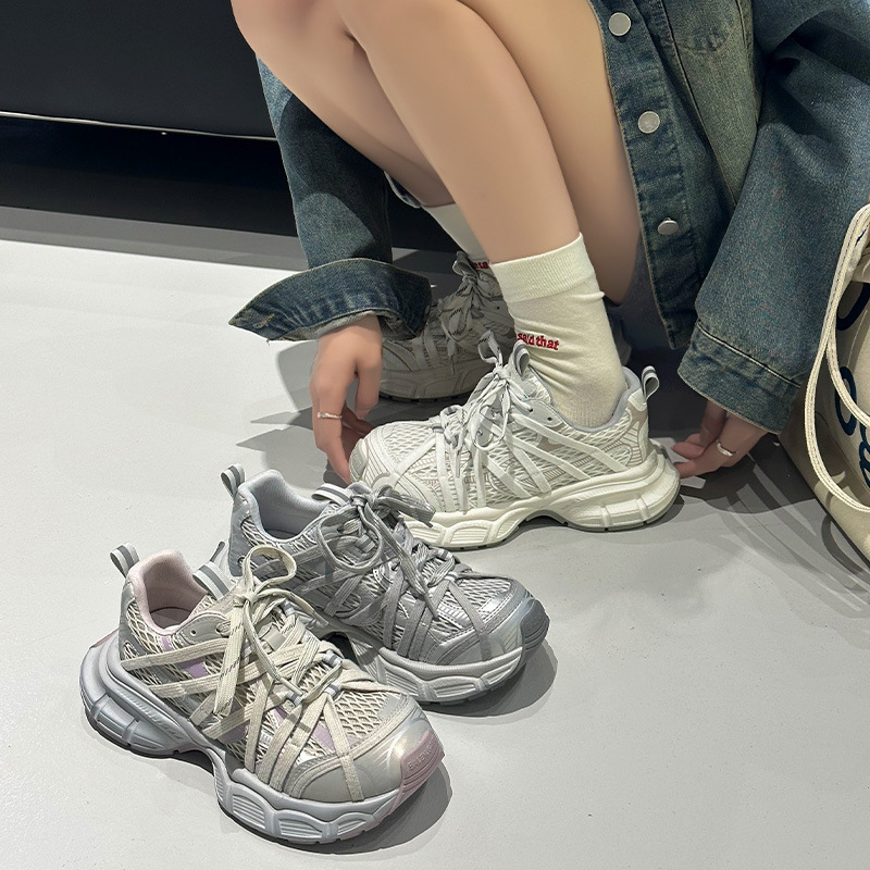 정품 가죽 두꺼운 톱니 토르 신발 여성의 2025 봄 캐주얼 신발 높이 증가 운동화 유행 올매치 라이트급 런닝 슈즈스토어 가기