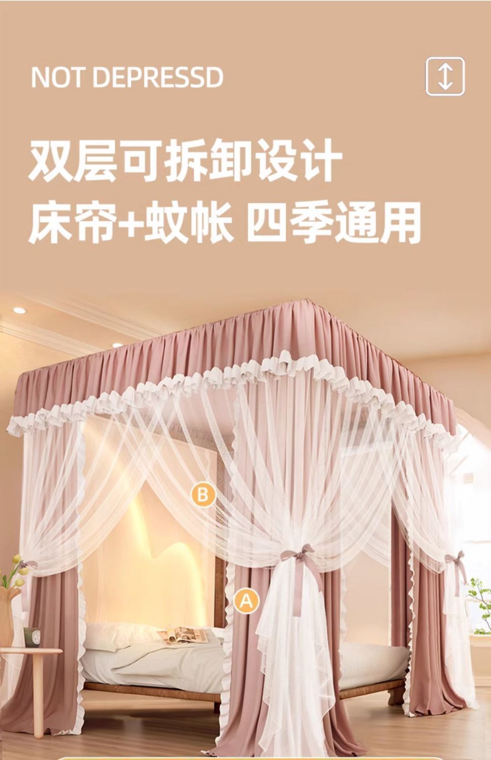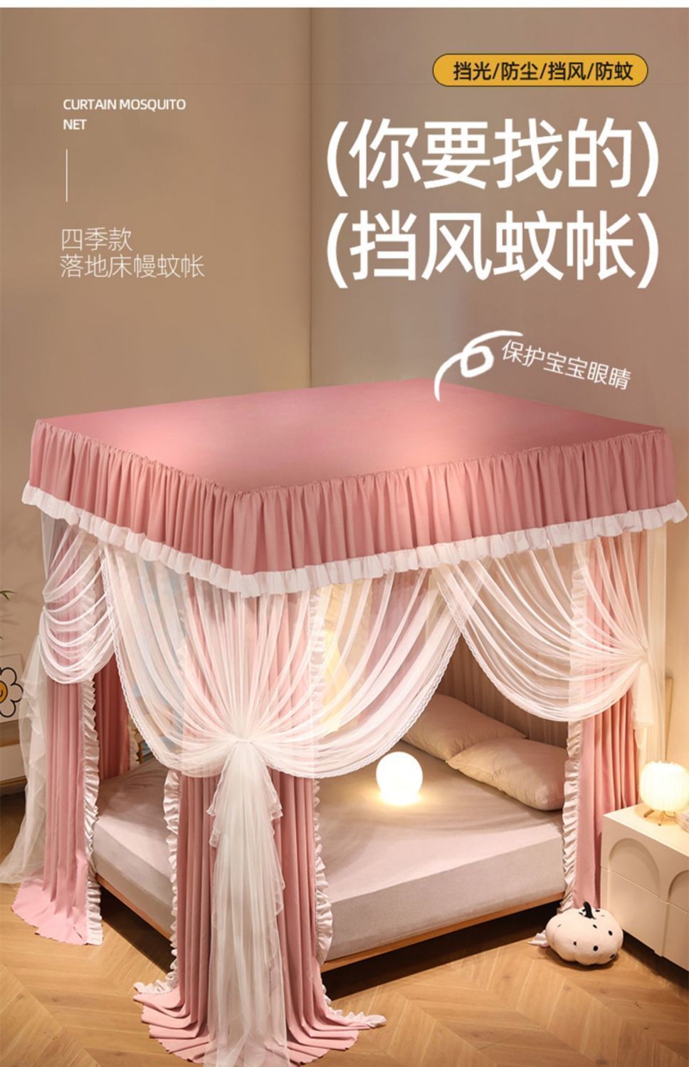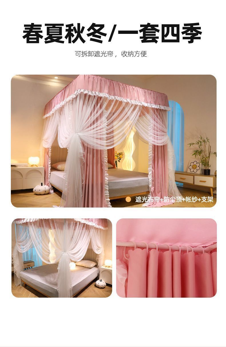 가정용 침실 차광 침대 커튼 모기장 일체형 2024 새로운 겨울 방풍 및 따뜻한 바닥에서 천장까지 3 도어 침대 커튼스토어 가기
