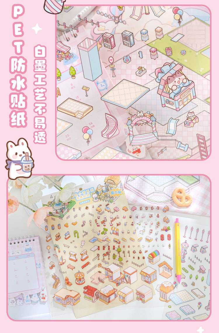 종이 추적 소형 조경 스티커 동물원 작은 클래스 야옹 작은 마을 시리즈 시각적 3D 입체 오두막 손 계정 스티커스토어 가기
