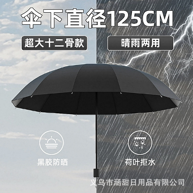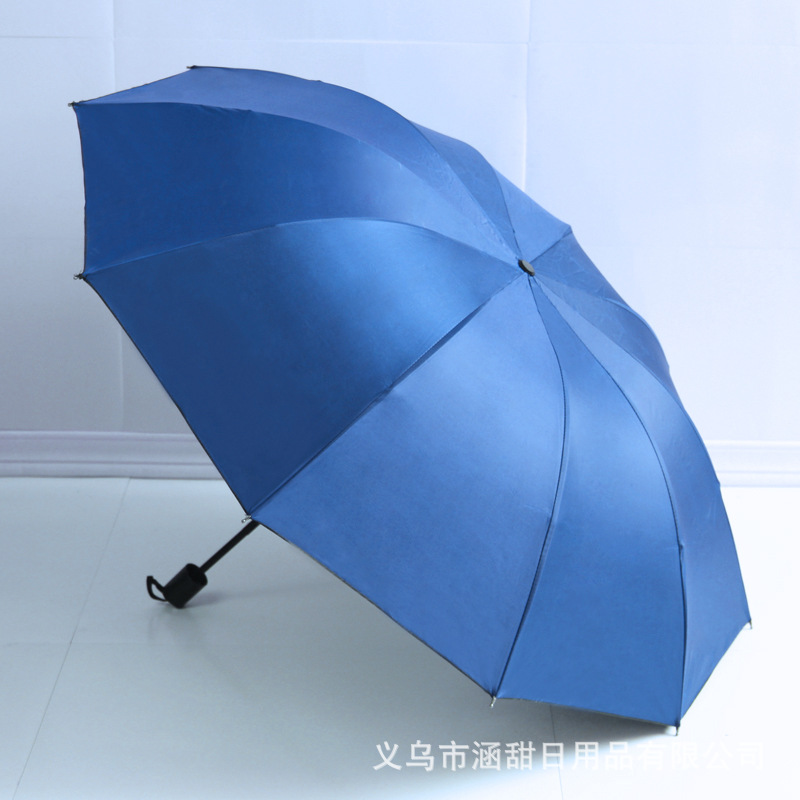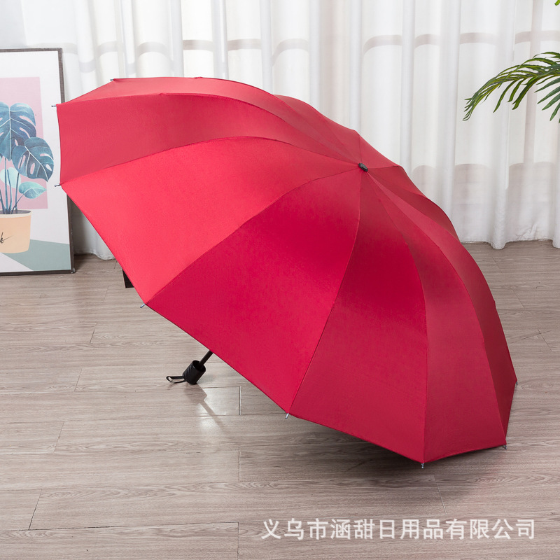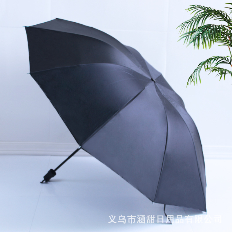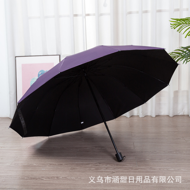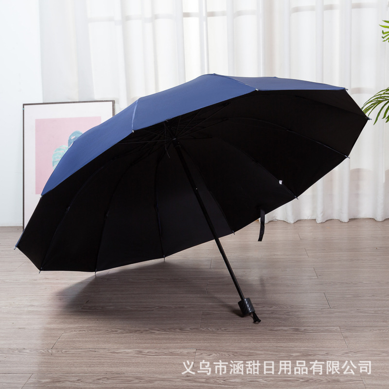 12 뼈 대형 접이식 우산 두꺼운 자외선 차단제 검은 고무 3 인 태양 우산 광고 우산 인쇄 로고