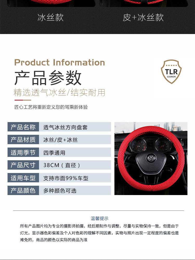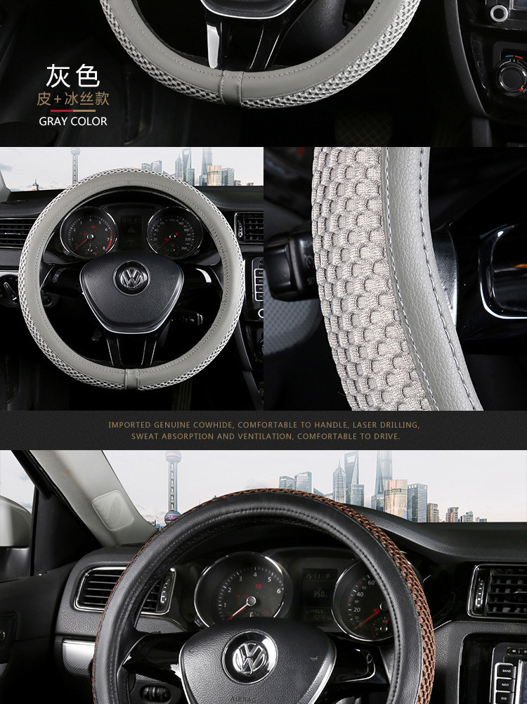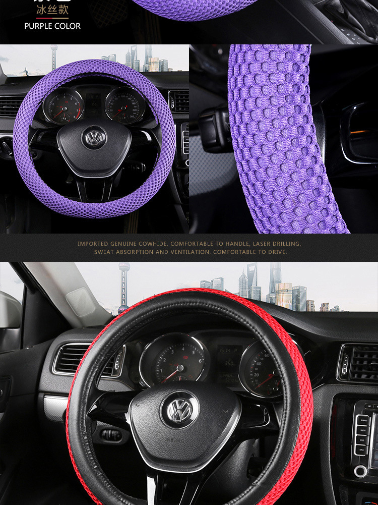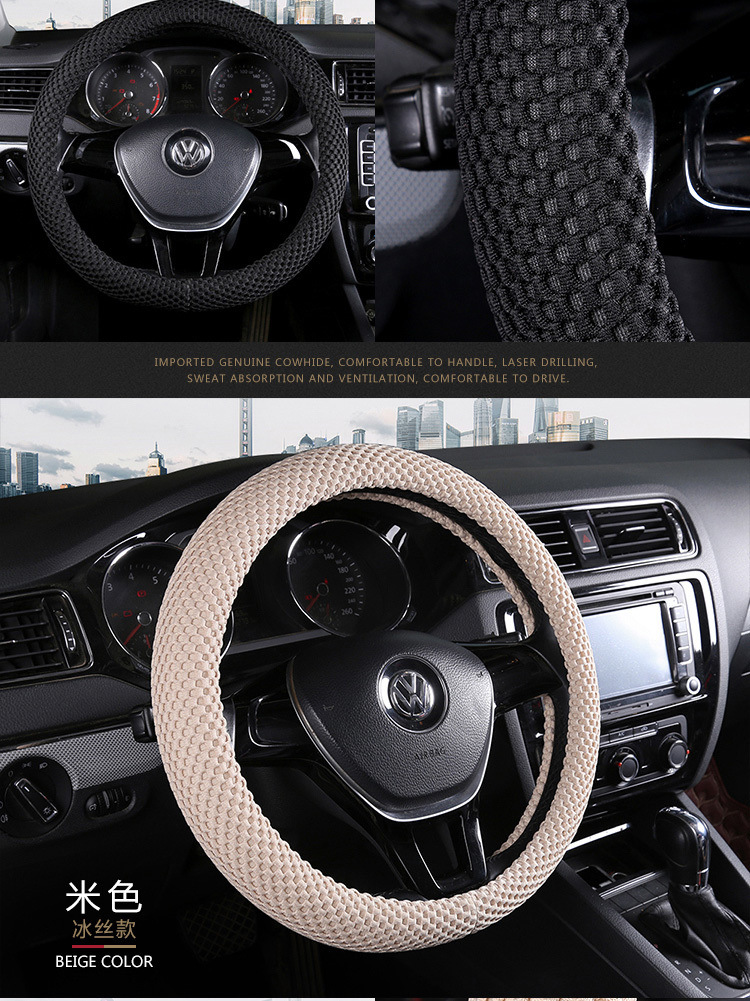 아이스 실크 스티어링 휠 커버, 사계절 미끄럼 방지, 땀 흡수성, 내마모성, 통기성, Subo 멀티 모델 범용 핸들 커버 공장 Amazon스토어 가기