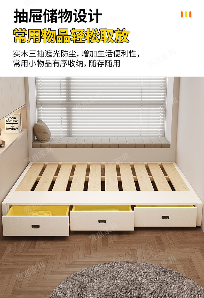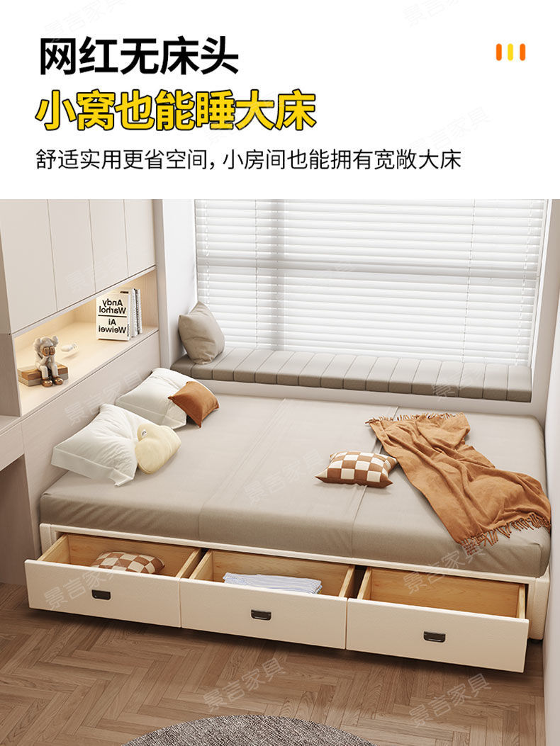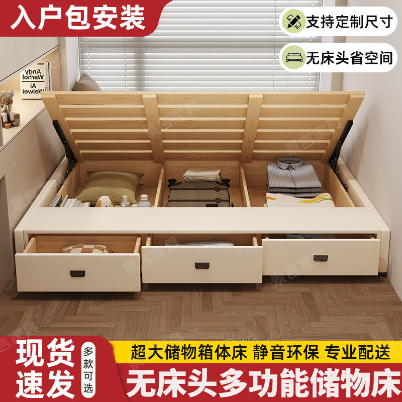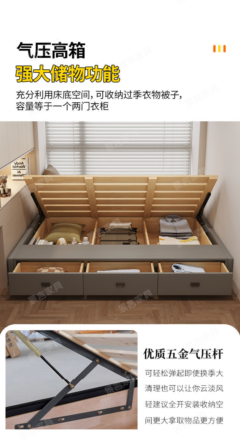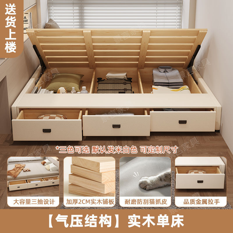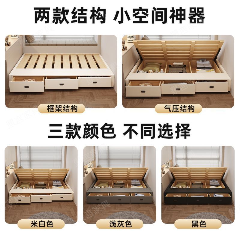 침대 옆 현대 간단한 줄 해골 다다미 침실 공기 압력 저장 침실 단단한 나무 침대 없음스토어 가기
