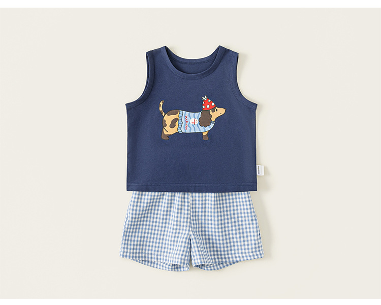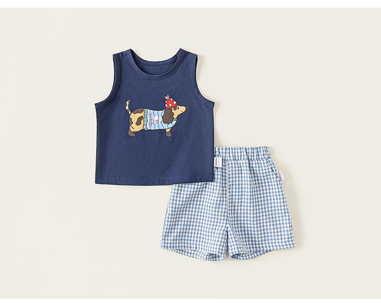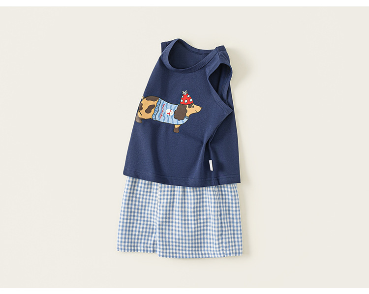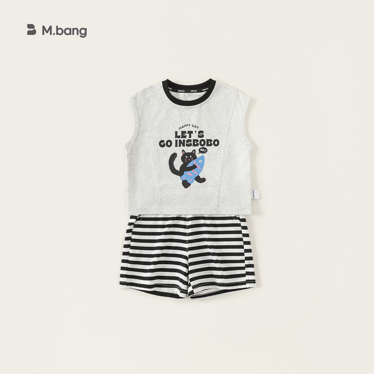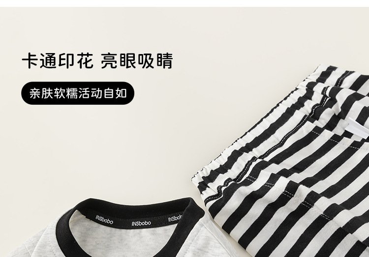 유바오 아동복 세트 여름 만화 인쇄 캐주얼 티셔츠 어린이 줄무늬 캐주얼 반바지 투피스 세트스토어 가기