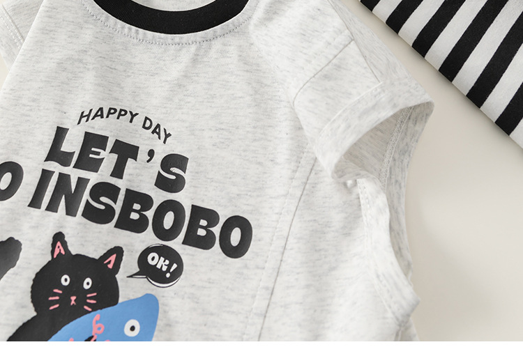 유바오 아동복 세트 여름 만화 인쇄 캐주얼 티셔츠 어린이 줄무늬 캐주얼 반바지 투피스 세트