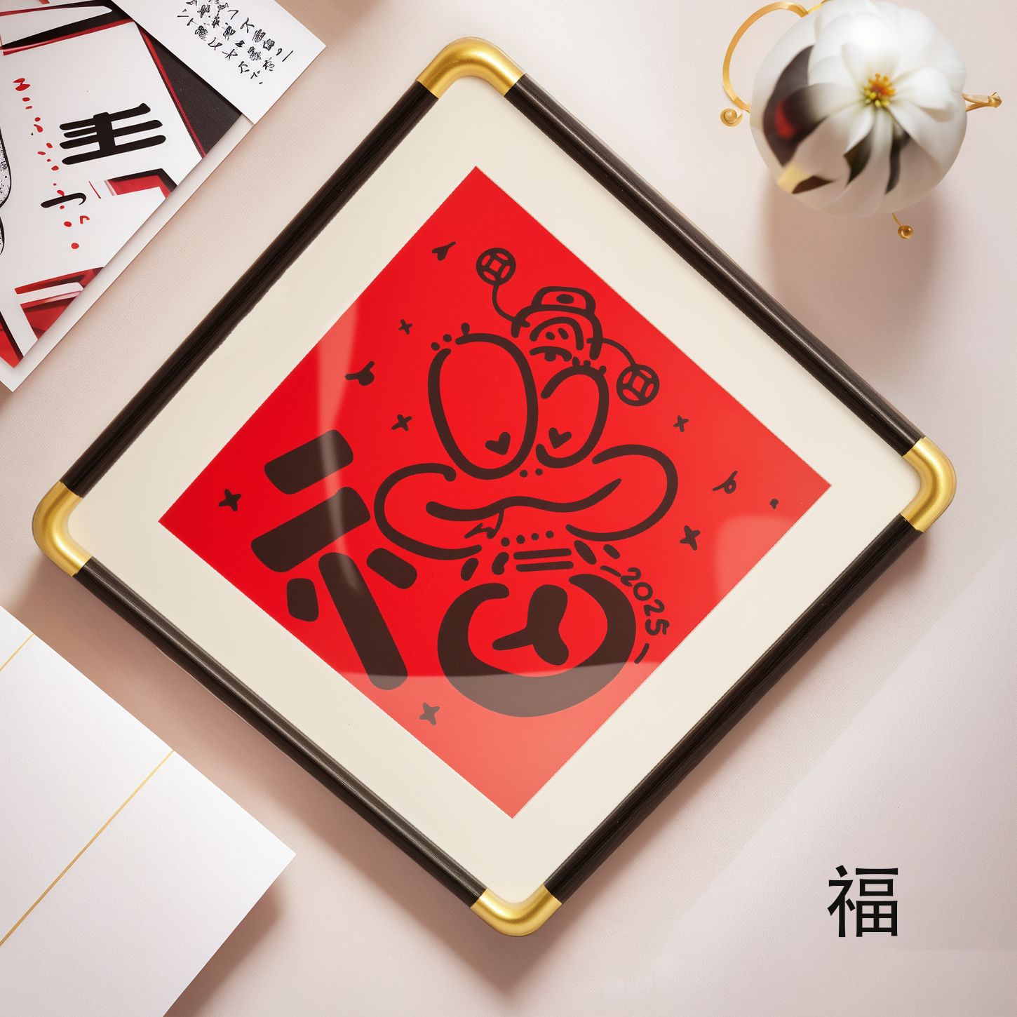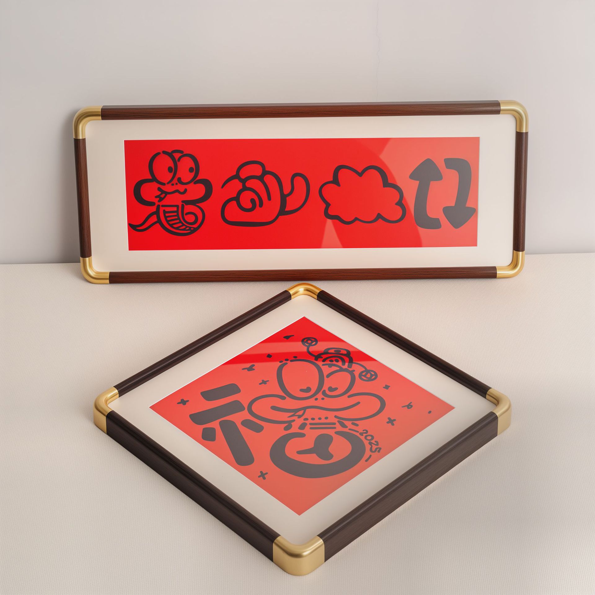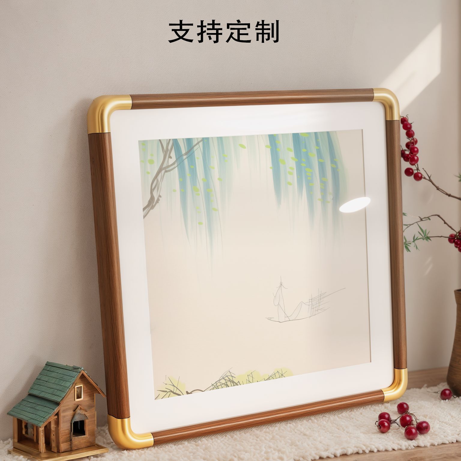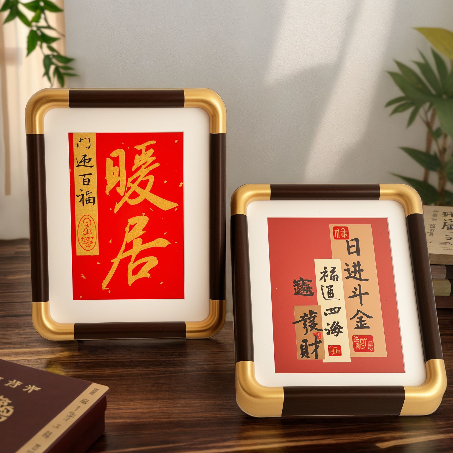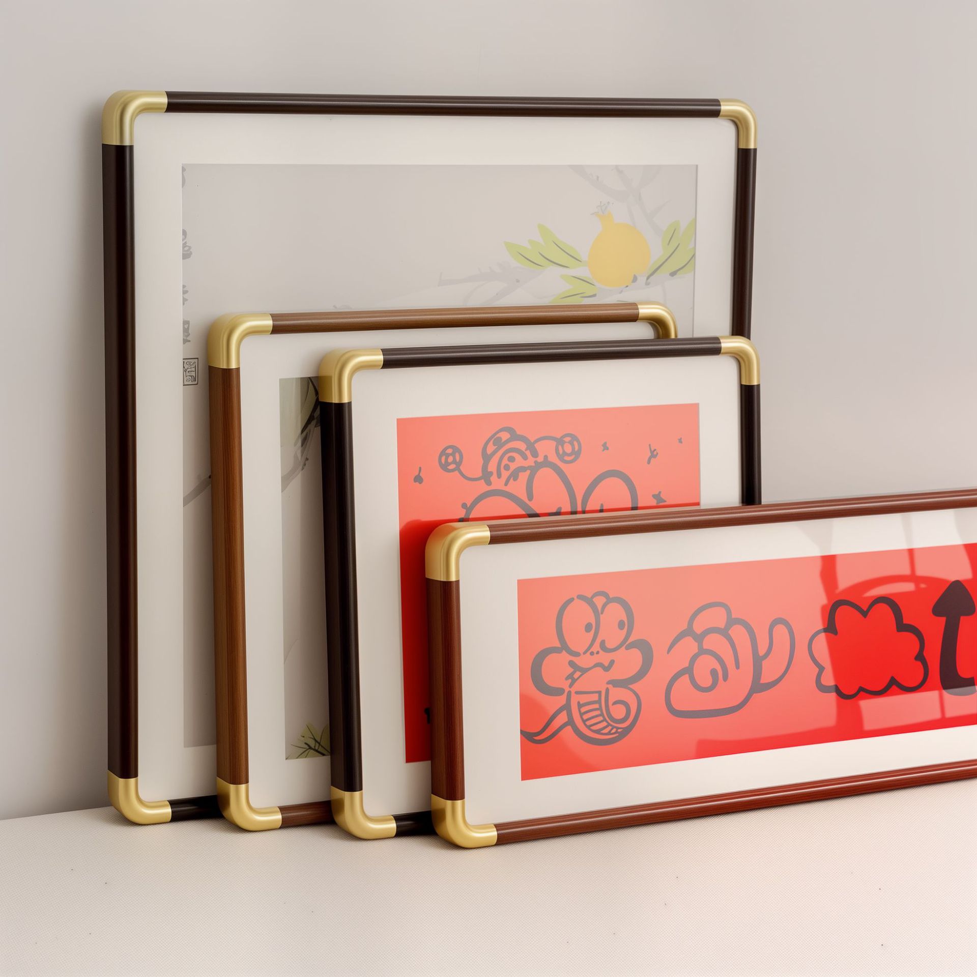 PVC 모조 구리 앵글 사진 프레임 직각 둥근 모서리 사진 프레임 새로운 중국 스타일 장식 서예 서예 액자 도매