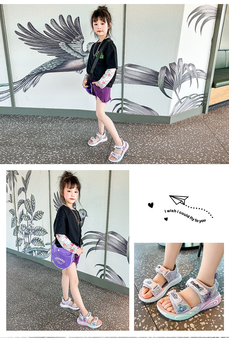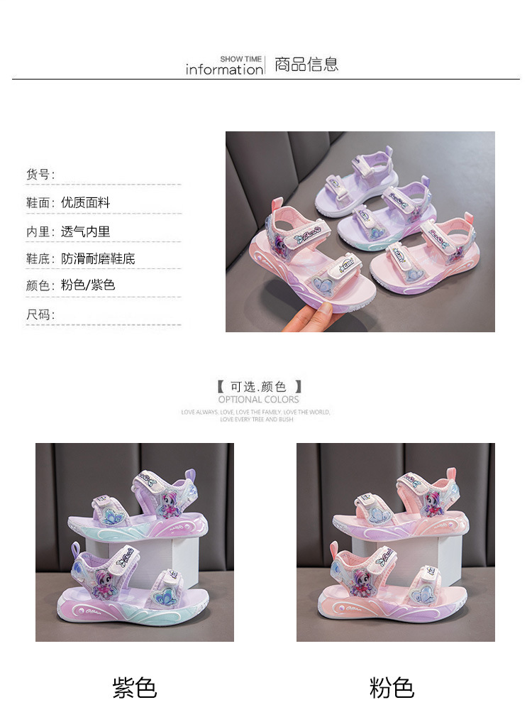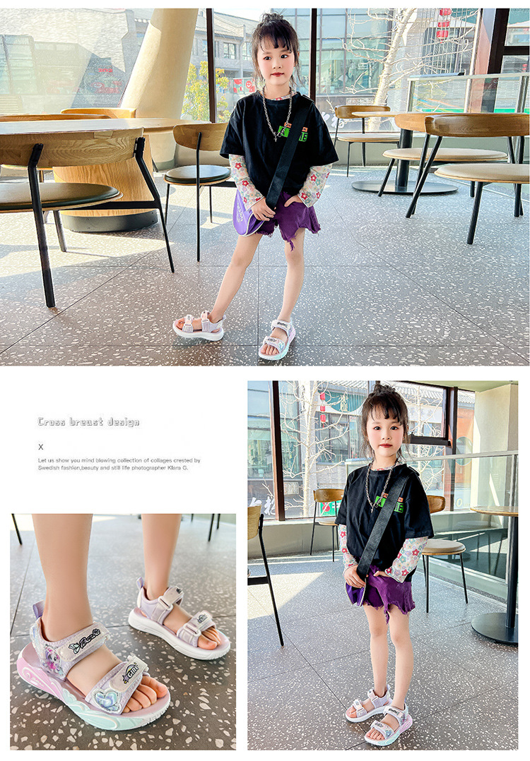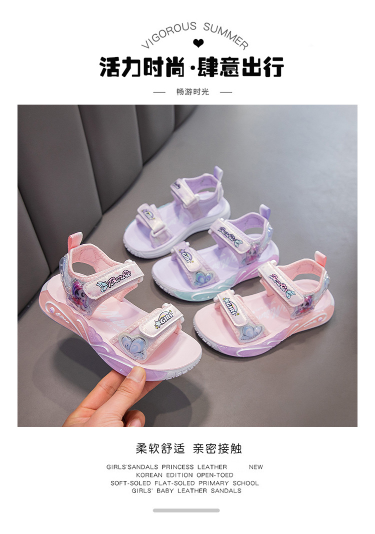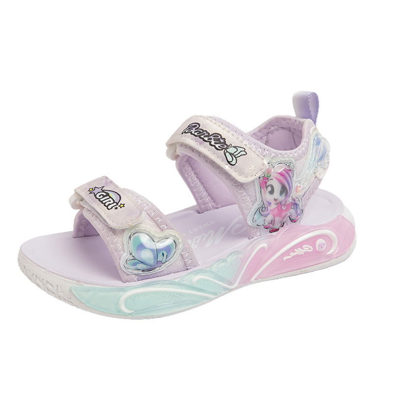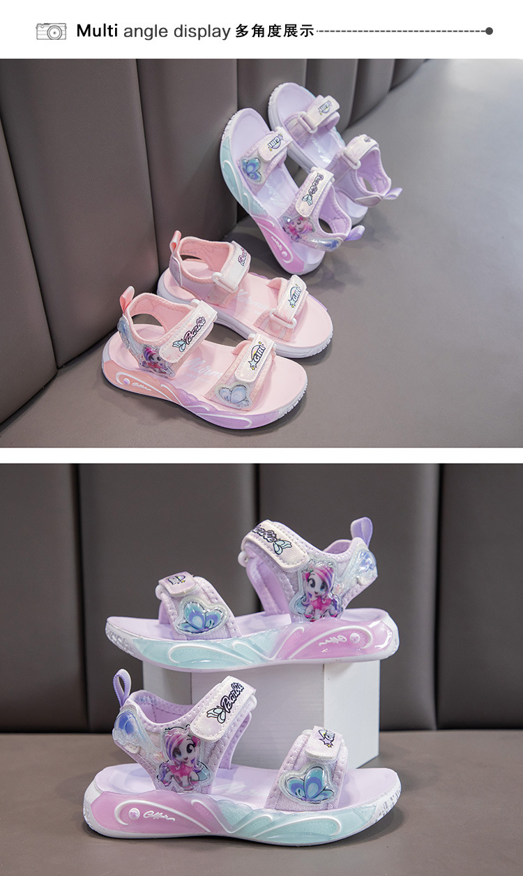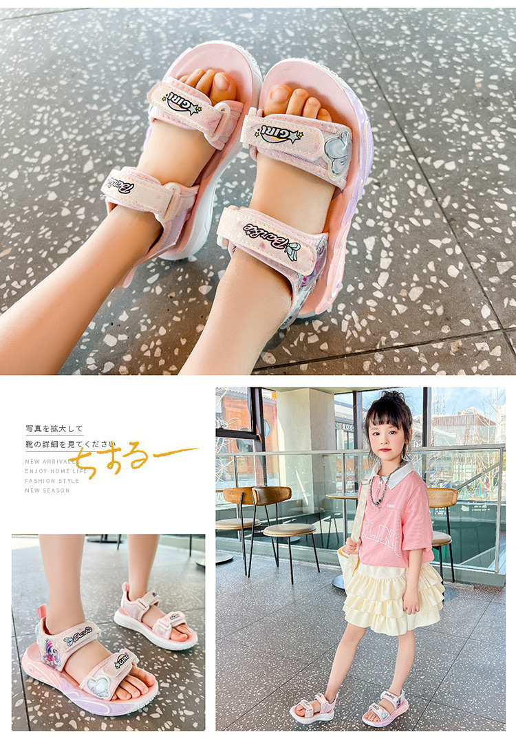 여자 세련된 공주 신발 2025 여름 새로운 패션 만화 어린이 샌들 부드러운 바닥 오픈 발가락 비치 슈즈 미끄럼 방지스토어 가기