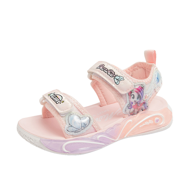 여자 세련된 공주 신발 2025 여름 새로운 패션 만화 어린이 샌들 부드러운 바닥 오픈 발가락 비치 슈즈 미끄럼 방지