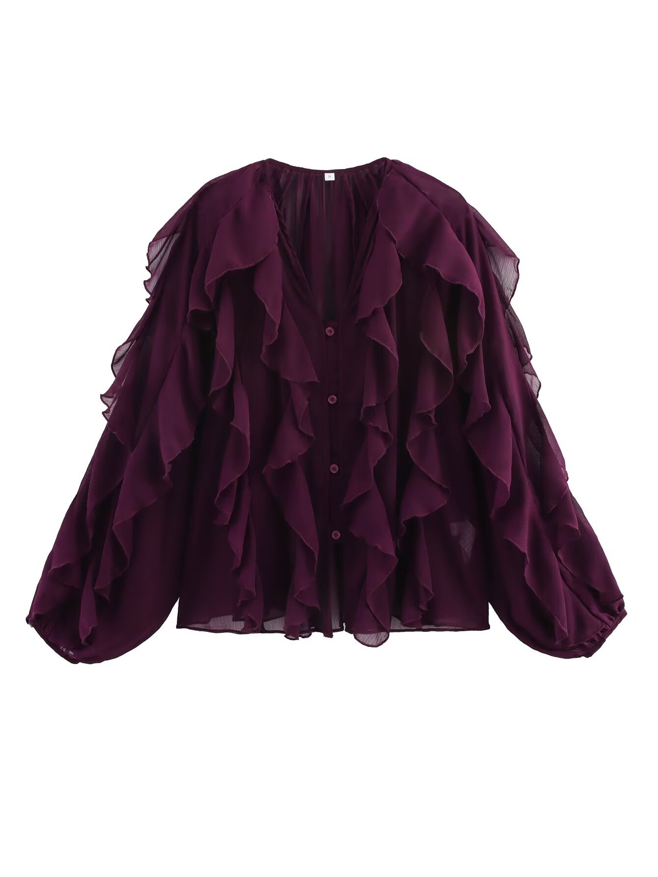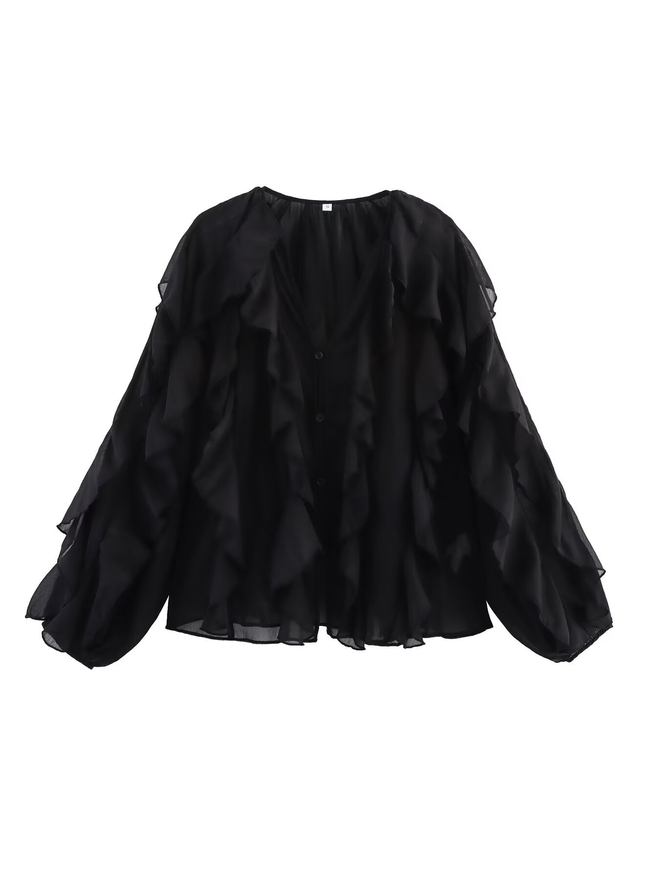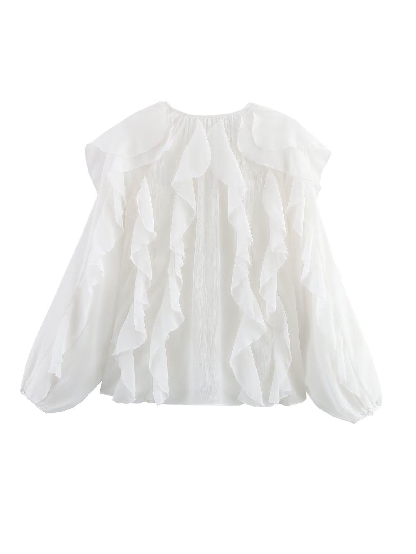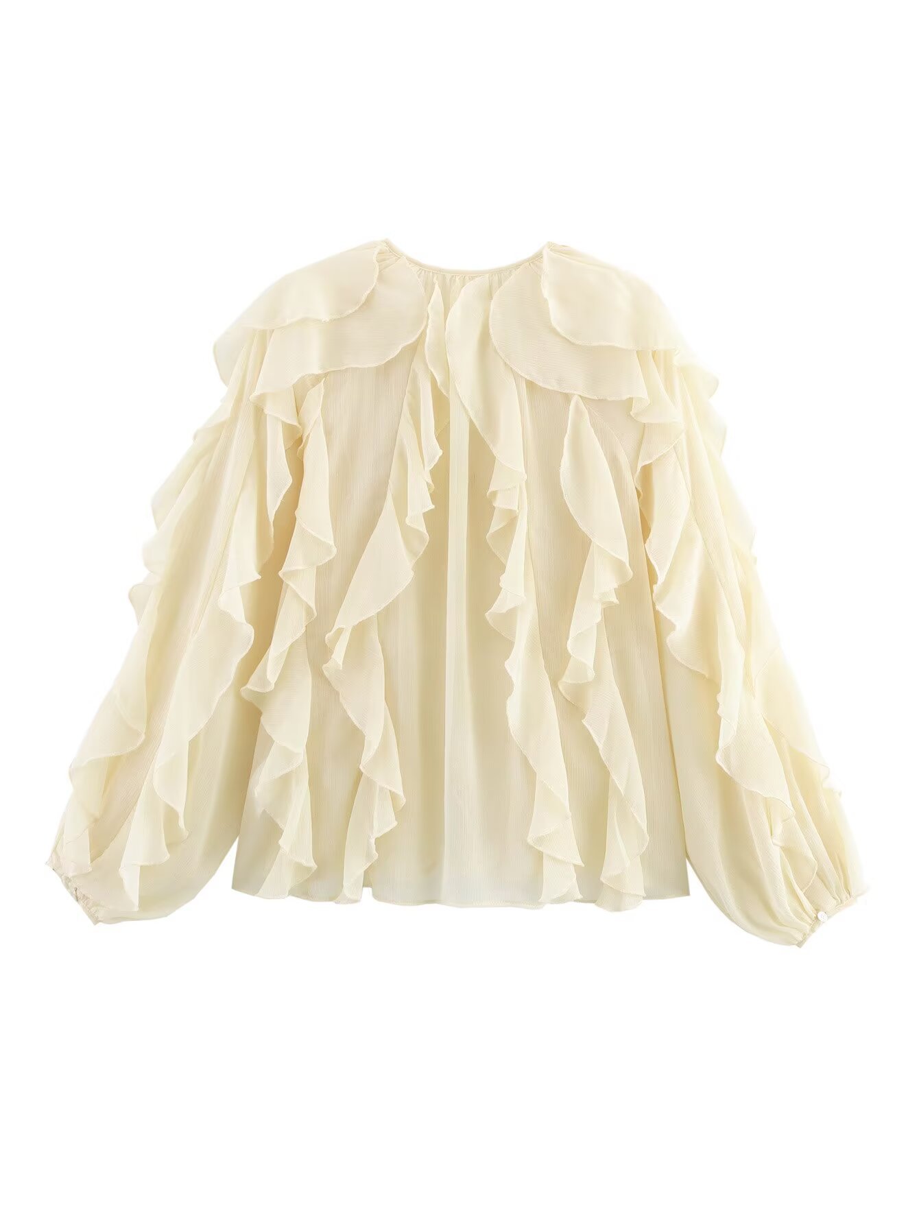 ZA 크로스보더 2025 신작 봄 여성 브이넥 심플하고 다재다능한 레이어드 장식 셔츠 탑스토어 가기