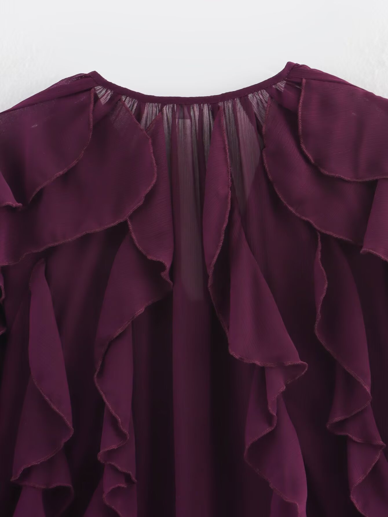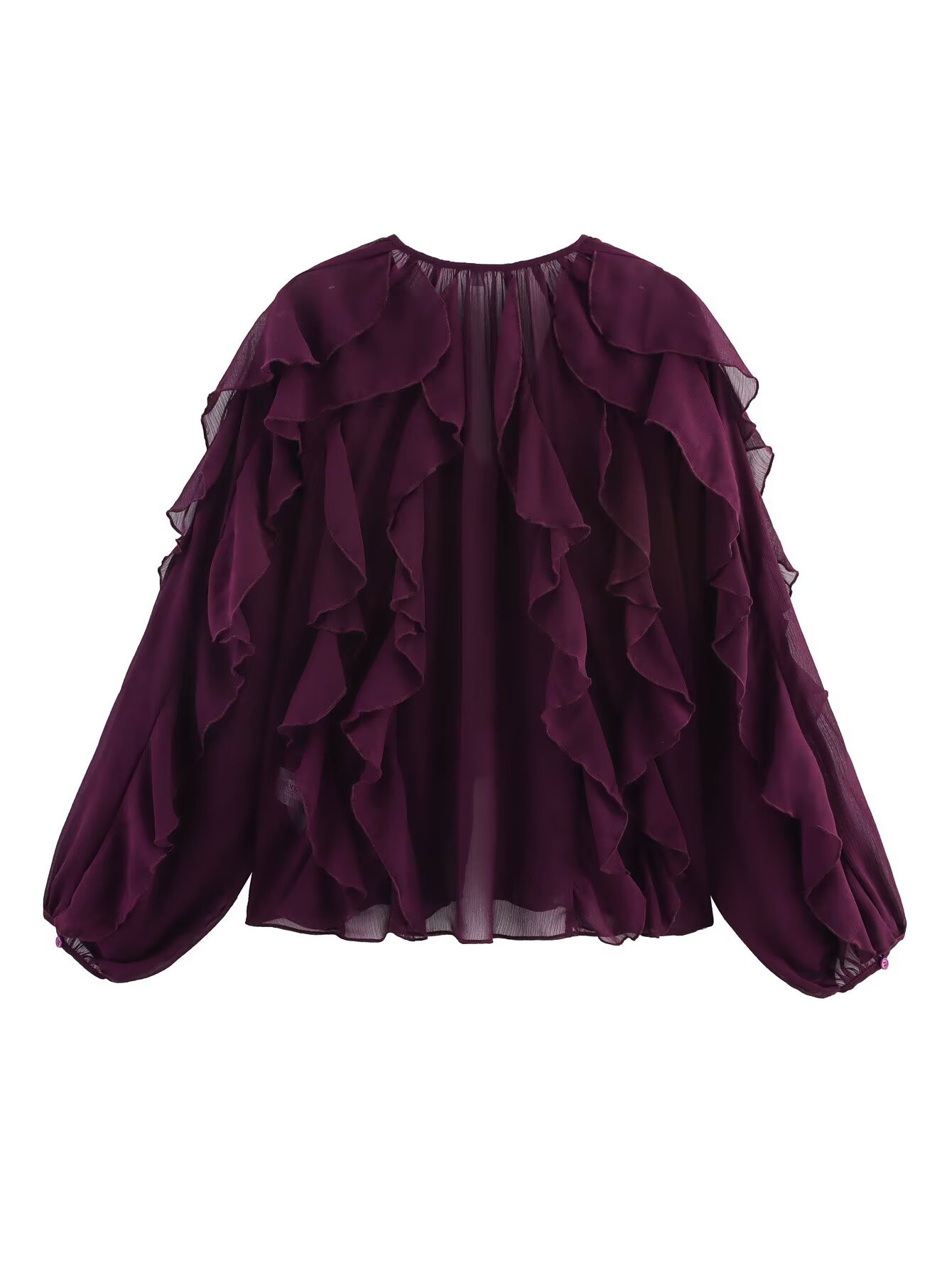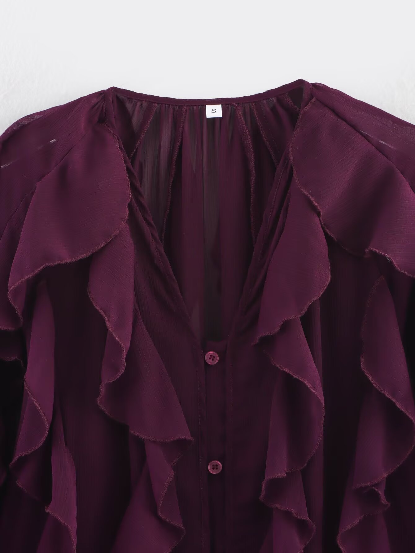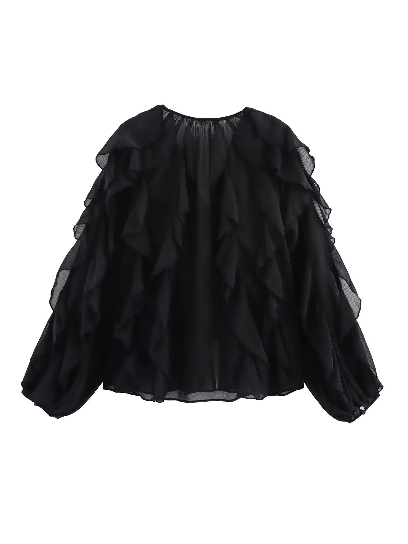 ZA 크로스보더 2025 신작 봄 여성 브이넥 심플하고 다재다능한 레이어드 장식 셔츠 탑스토어 가기