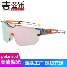 新款时尚运动眼镜 跨境炫彩连体偏光墨镜 男女户外骑行太阳镜批发